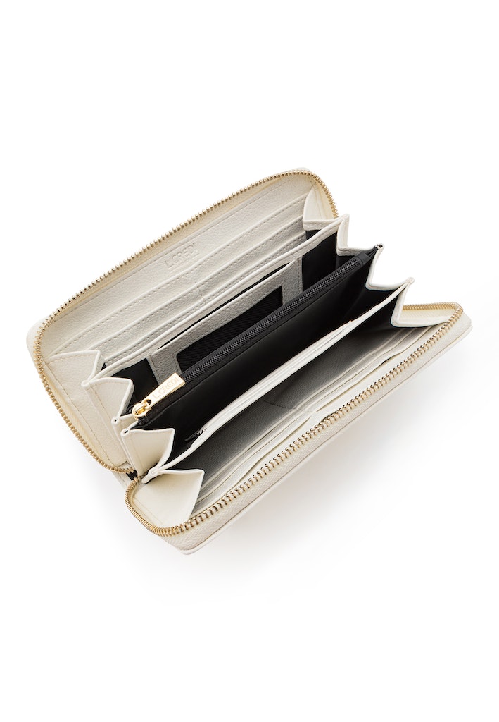 Die Damengeldbörse FILIPPA setzt auf einen spannenden Twist. Der cleanen Außenseite mit der dezenten Label-Prägung und einem Reißverschlussfach an der Rückseite steht eine umfangreiche Innenausstattung gegenüber. Ein Münzfach, vier Geldschein-, zehn Kartenfächer und ein Sichtfach bieten ausreichend Platz, um alles Notwendige übersichtlich zu verstauen. Sowohl an der Außen- als auch an der Innenseite des aus fein genarbtem Lederimitat gefertigten Portemonnaies verweist eine kleine Label-Prägung auf die Marke.