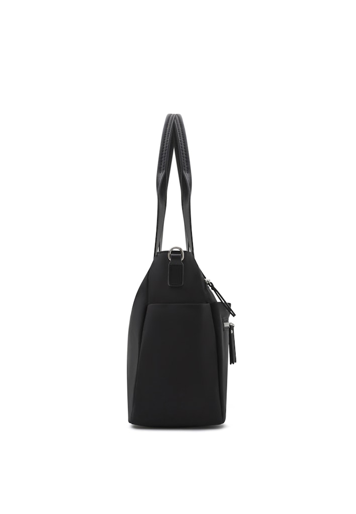 ODETA ist perfekt für die Tage, an denen man mehr braucht als Smartphone und Schlüssel. Dafür hält sie einiges an Platz und Struktur bereit. Die PETA-Approved Vegan Shopping Bag überzeugt mit einem hochwertigen, robusten Obermaterial und einer präzisen Verarbeitung. Das geräumige Hauptfach wird um drei weitere Fächer mit Reißverschluss und zwei Steckfächern auf der Vorderseite ergänzt. An jeder Seite befindet sich ein schmales Fach, ideal für eine Trinkflasche oder einen kleinen Regenschirm. Dinge, die besonders sicher aufbewahrt werden sollen, kommen in das körpernahe Zipperfach auf der Rückseite. Zudem ist ODETA nicht nur eine Henkeltasche, sondern ebenso als Tragetasche einsetzbar. Der optionale Trageriemen macht es möglich.