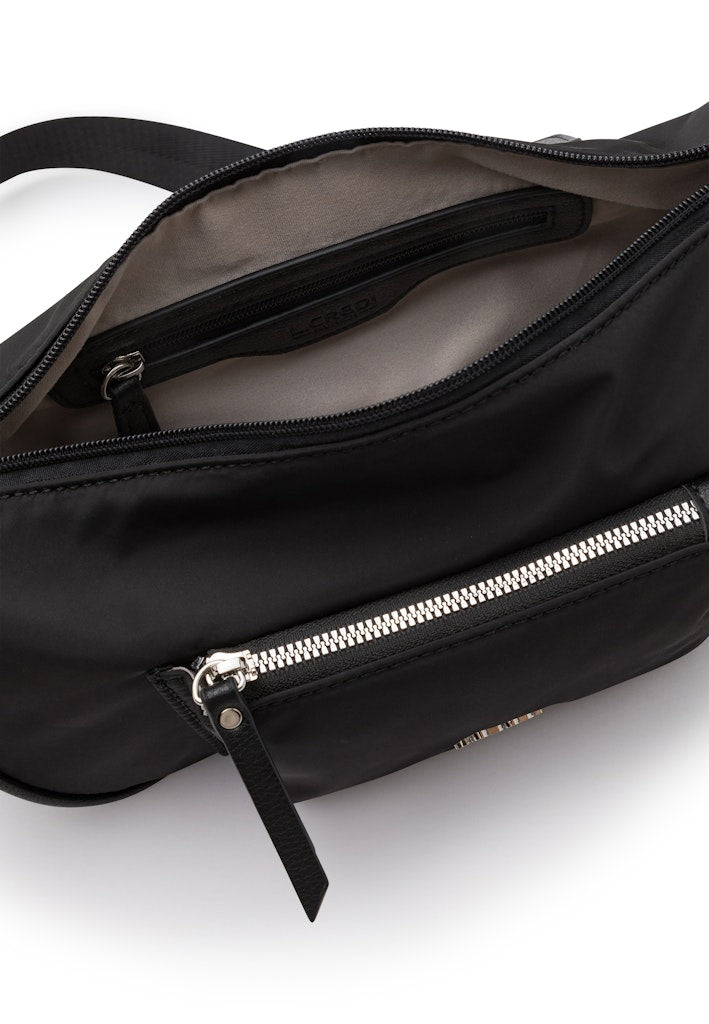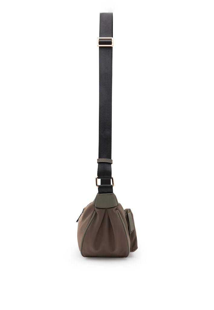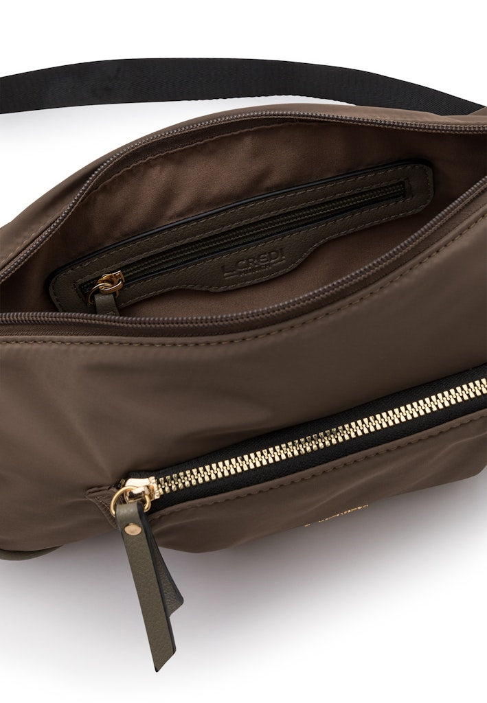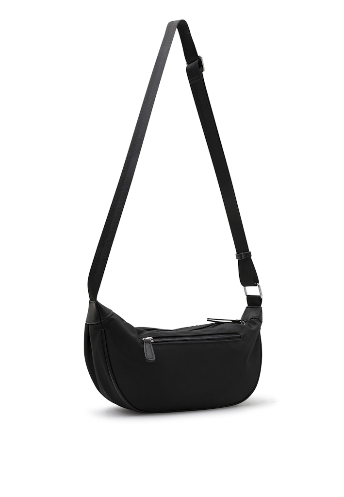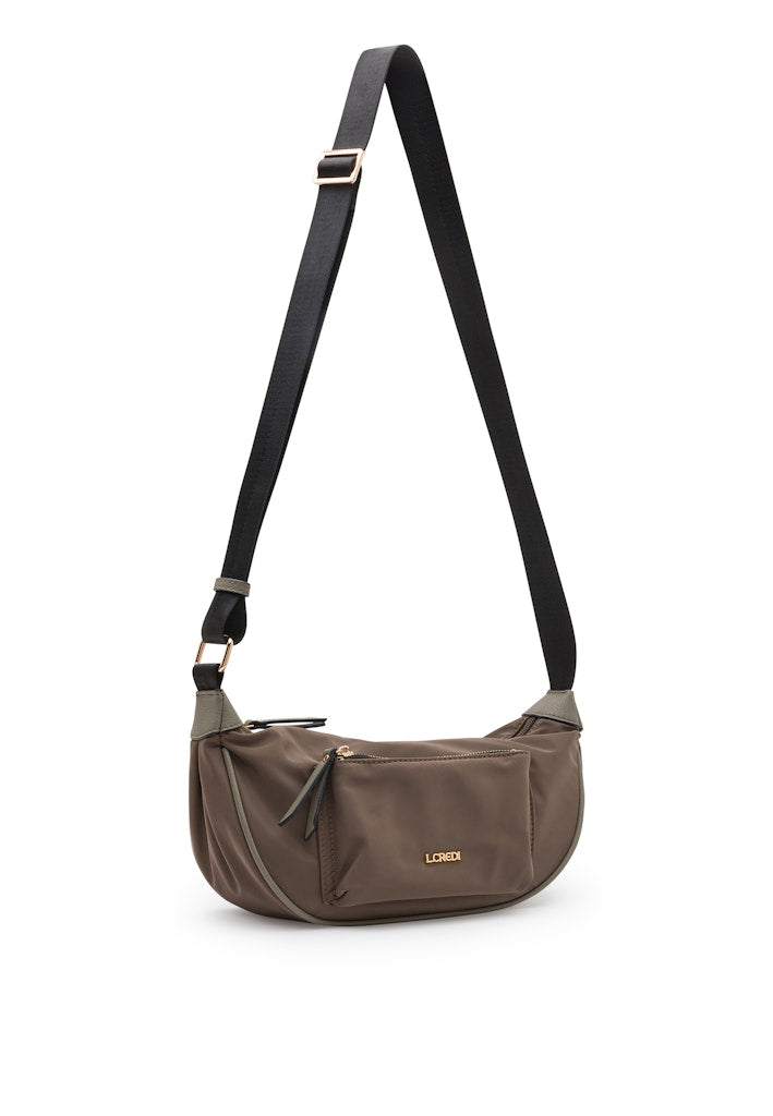 Mit ODETA kommt eine super trendige Nylon Bag auf die Showbühne der Modewelt. Das halbrunde Design erinnert an lässige Bauchtaschen, nur in größer und bequemer. ODETA hat einen breiten Textilriemen, damit sie als Cross Body Bag komfortabel auf der Schulter liegt. Sie verfügt nicht nur über das große Hauptfach, sondern hat zusätzlich auf der Front- und Rückseite eine kleine Tasche mit Reißverschluss. Ihr Design verhilft Outfits zu einem sportiven Charakter. Eine elegante Note verleiht ihr die umlaufende Paspel, die farblich passend gestaltet wurde. Somit bleibt es stets bei einer casual Nuance, die die Umhängetasche umgibt.