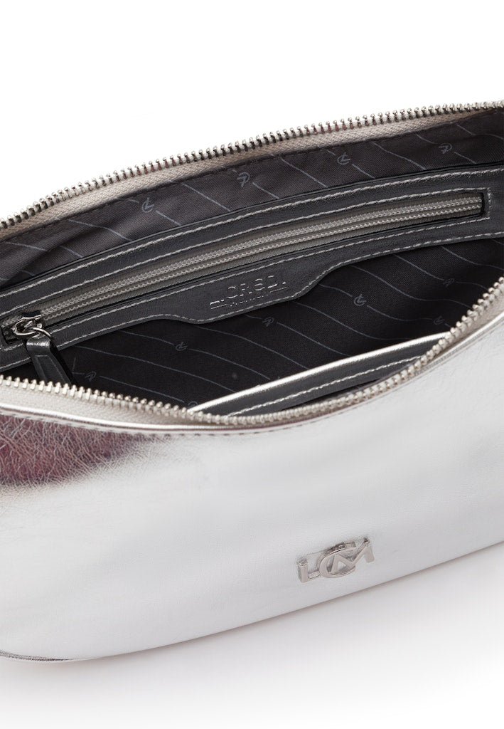 OLIVIANA ist eines dieser Schmuckstücke, bei denen man sich nicht entscheiden kann. Ist sie eine Abendtasche? Ist sie eine Alltagstasche? Ganz eindeutig: beides! Sie besticht mit ihrem metallisch glänzenden Design und verleiht jedem Outfit Eleganz. Eine kleine rockige Note schwingt dabei immer mit. Der tonal passende Trageriemen sorgt für einen lässigen Sitz auf der Hüfte oder körpernah auf der Schulter. Mit ausreichend Platz für notwendige Essentials ist sie perfekt für den Alltag oder besondere Anlässe. Ihre Fähigkeit zur Kombination macht OLIVIANA zu einem Must-Have für modebewusste Frauen.
