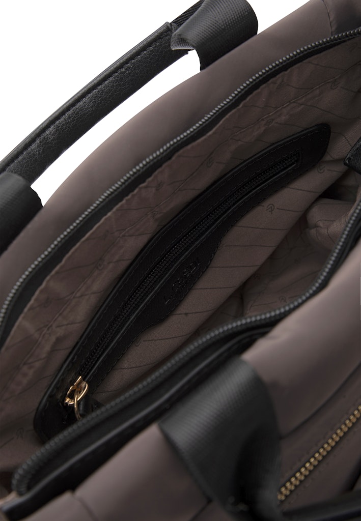 An dieser Tasche lässt sich ein fantastischer Mix aus dezent glänzendem Textil und Details aus Kunstleder bestaunen. Das pflegeleichte Obermaterial formt sich zu einem großzügigen Korpus, der viel Stauraum bietet. Dieser wird mit zwei Seitentaschen ergänzt und kann mit zusätzlichen Zipperfächern auf Vorder- und Rückseite überzeugen. Der Shopper PHELINA ist perfekt für den Alltag und Reisen. Immer dann, wenn man etwas mehr mitnehmen muss, aber auf Stil nicht verzichten möchte, ist sie die Tasche der Wahl. Als Tragevarianten stehen kurze Henkel und ein langer Schultergurt zur Verfügung.