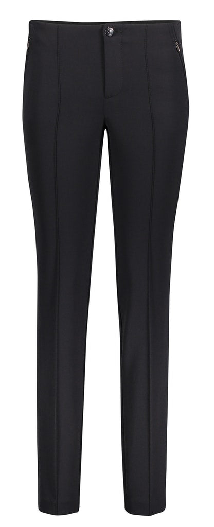 Slim Fit, Slim Leg, schmal zulaufendes Bein, leicht erhöhte Leibhöhe, bequeme Taille, seitliche Reißverschluss-Taschen vorne, Paspeltaschen hinten, feine Biesennähte, hochwertige Bi-Stretch-Qualität, angenehm auf der Haut, hervorragendes Rücksprung-Verhalten, sportiv-elegante Optik, hoher Tragekomfort, pflegeleicht, knitterfreie Eigenschaften, businesstauglich, Das Model ist 1,75m groß und trägt die MAC Hosengröße 36, Fußweite bei Größe 36: 29cm