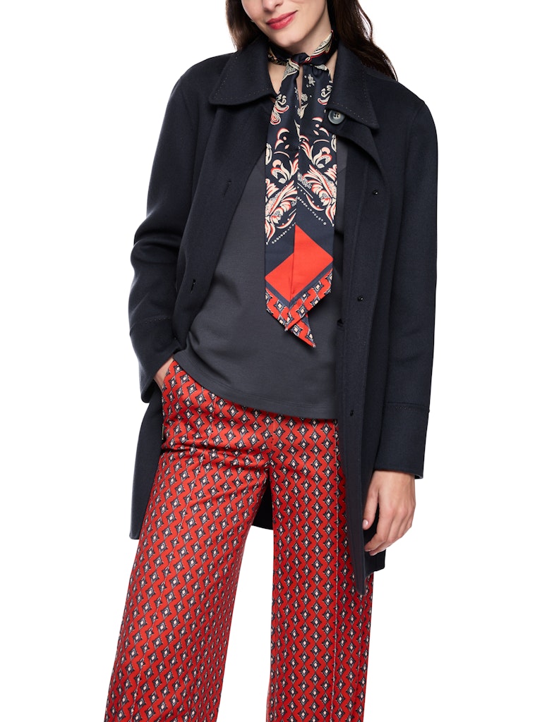 Eleganter Mantel aus 100 % reiner Wolle für stilvolle Auftritte. Mit seitlichen Taschen, markantem Gürtel-Detail auf der Rückseite und feinen Kontraststitchings verbindet er zeitlose Eleganz mit modernem Design. Hochwertige Verarbeitung sorgt für langlebigen Tragekomfort – ein Must-have für jede Garderobe.
