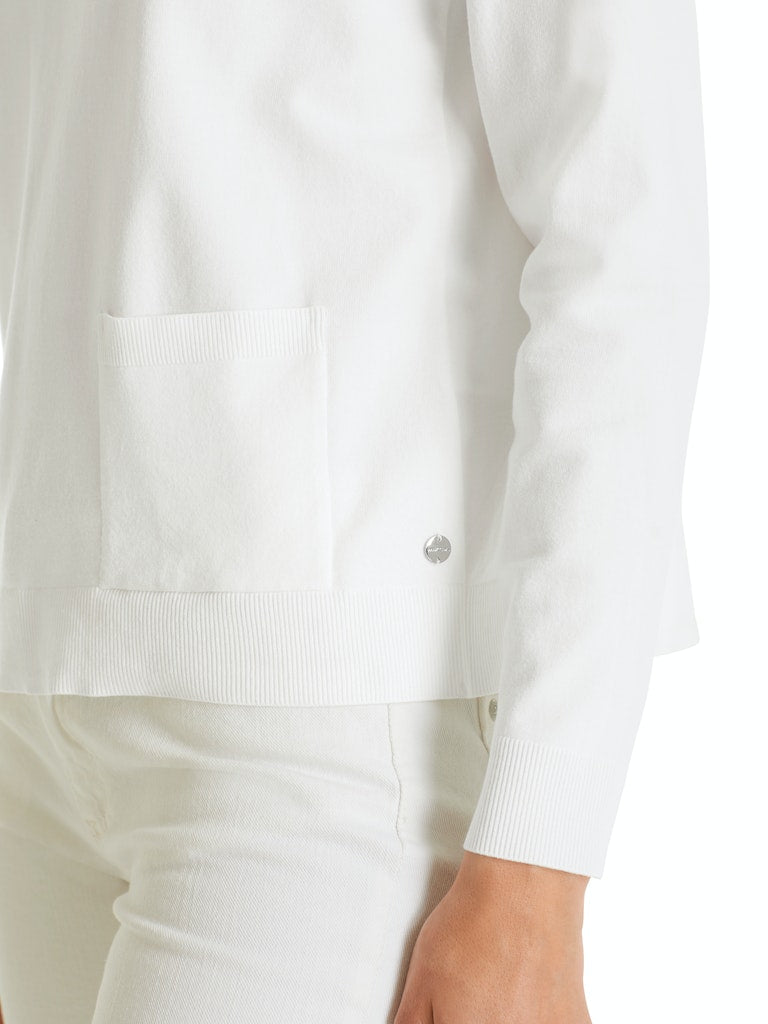 Exquisiter Pullover mit aufgesetztem Täschchen. Der „Rethink Together“ Pullover besteht zu 70 % aus LENZING™ ECOVERO™ Viskose. Für diese Faser kommt Holz aus zertifizierter Forstwirtschaft zum Einsatz und ihre Herstellung erfolgt besonders umweltschonend. Das Modell ist auch Knitted in Germany: Das Verstricken der Garne auf hochmodernen Strickmaschinen und die Veredelung der Stoffe geschehen in Deutschland. Zusammengenäht werden die Teile in europäischen Partnerbetrieben.