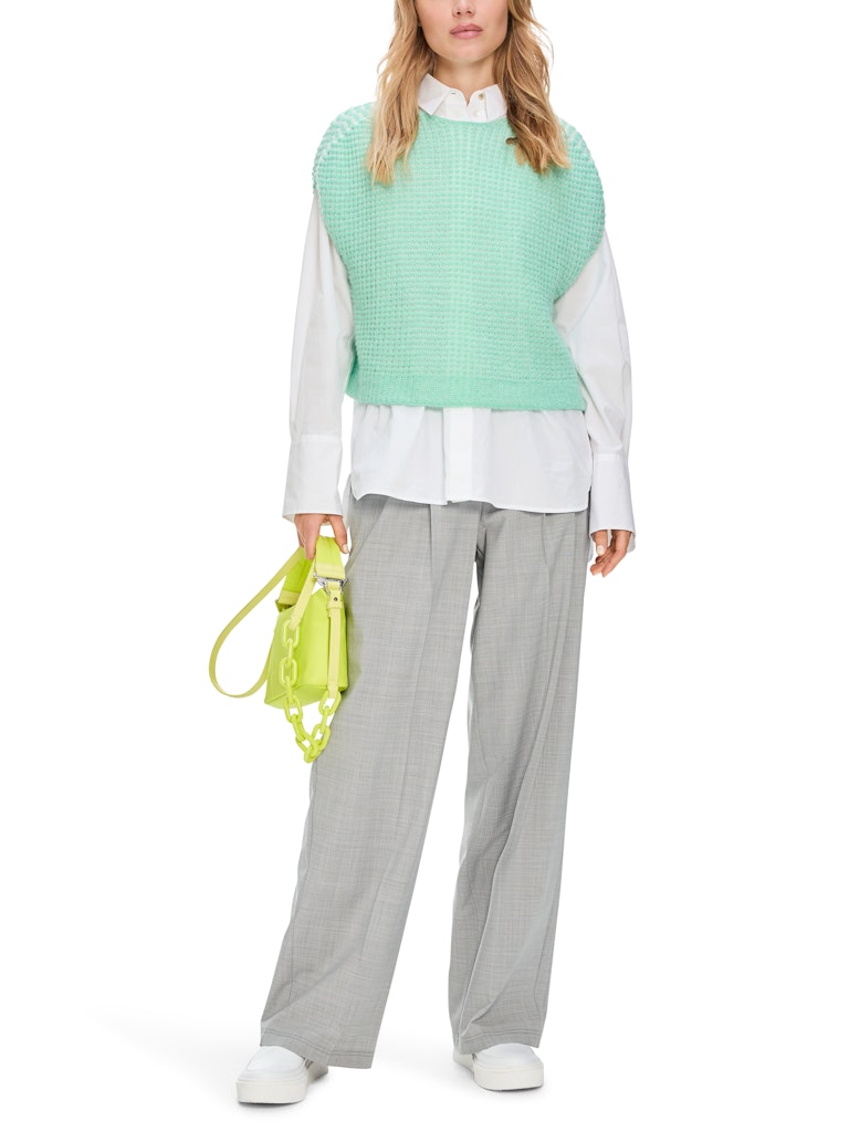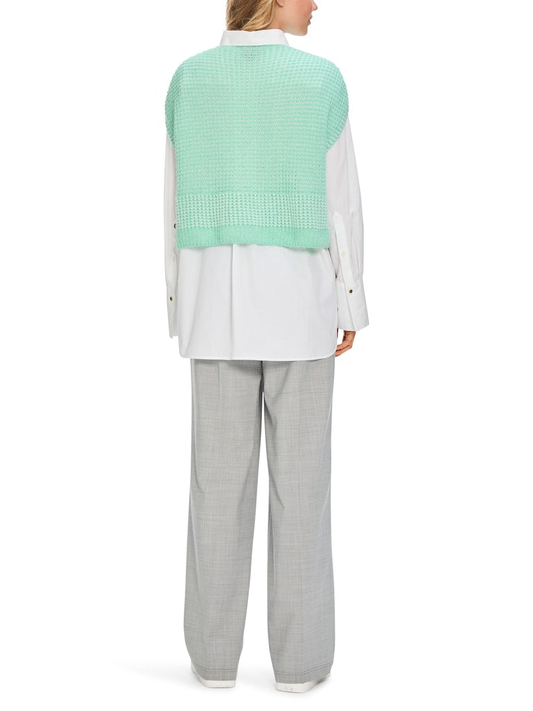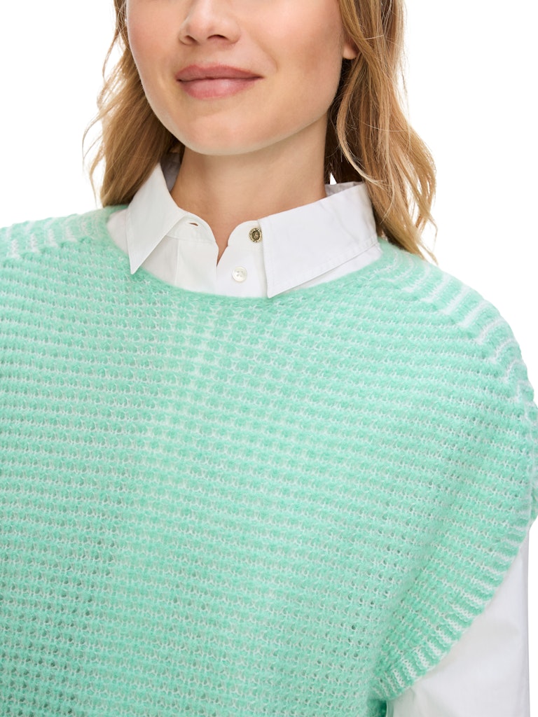 Tolles Kombinationsteil: Tank Top aus alpaka-basierter Wollmischung. Trendy, der geometrische Schnitt mit abgeschrägter Schulterlinie. Lebhafter Farbakzent im Rückenteil. Die Zweifarbigkeit basiert auf einer innovativen Technologie. Das Modell wird in einem 3D-Strickverfahren komplett in einem Stück gestrickt. Daher hat es keine Nähte und bietet so einen außergewöhnlichen Tragekomfort. Der gesamte Produktionsprozess erfolgt in Deutschland, damit ist das Tank Top 100 % Made in Germany.