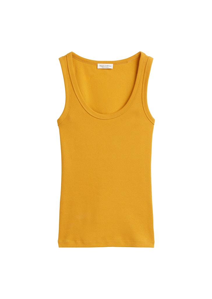 Idealer Stylingpartner für viele Looks: das unifarbene, schlicht gestaltete Ripp-Tanktop aus hochwertiger, elastischer Organic-Cotton-Mischung. Ärmellos mit tiefem Rundhalsausschnitt und gerader Saumlinie. Die weiche Qualität sorgt für ein angenehmes Tragegefühl und einen femininen Look.