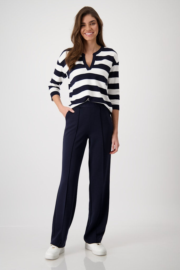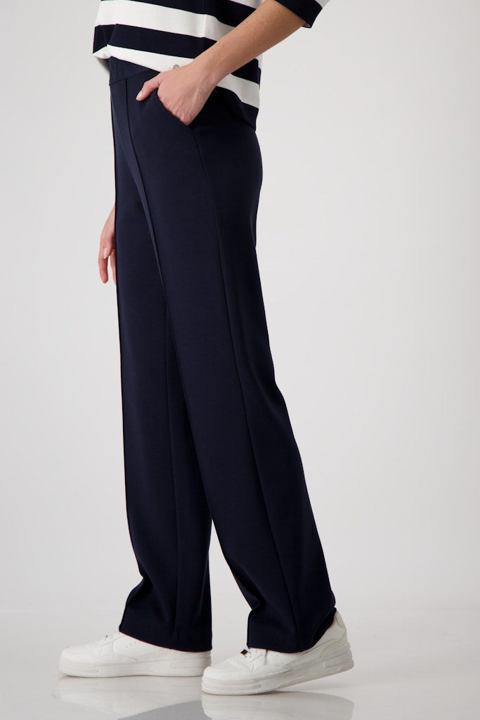 Die Straight-Hose aus einer fließenden Viskosemischung überzeugt mit elastischem Schriftband und seitlichen Eingrifftaschen. Perfekt für einen bequemen und stylischen Look. Diese Hose gibt es auch in einer langen Form, siehe Artikel 409547.