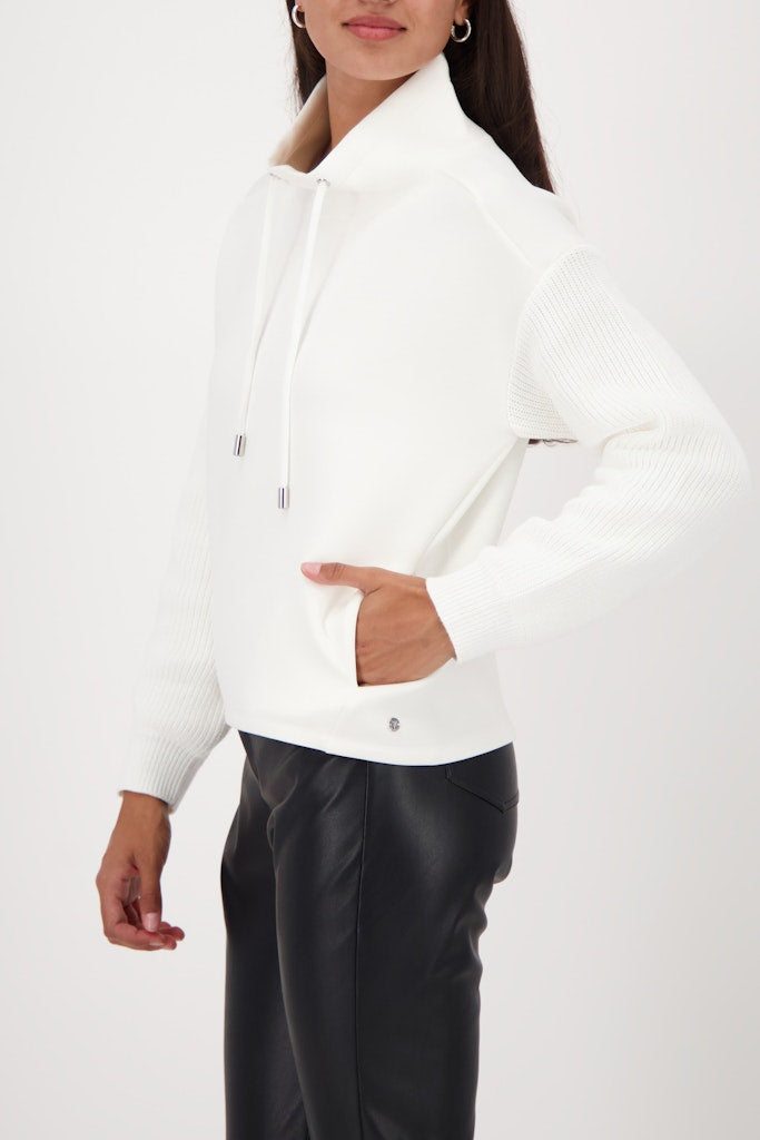 Dieses stilvolle Sweatshirt aus einer fließenden Viskose vereint ein elastisches Material mit eleganten gestrickten Ärmeln.