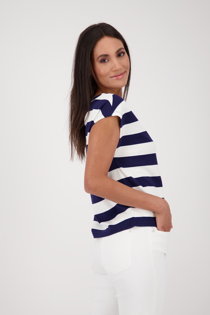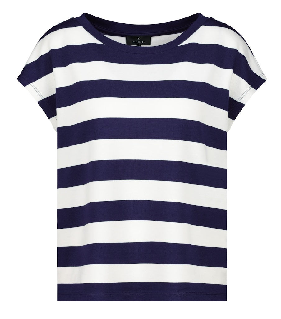Das gestreifte Sweatshirt besticht durch einen lässigen Schnitt mit überschnittenen Schultern und einen modernen U-Boot-Ausschnitt.