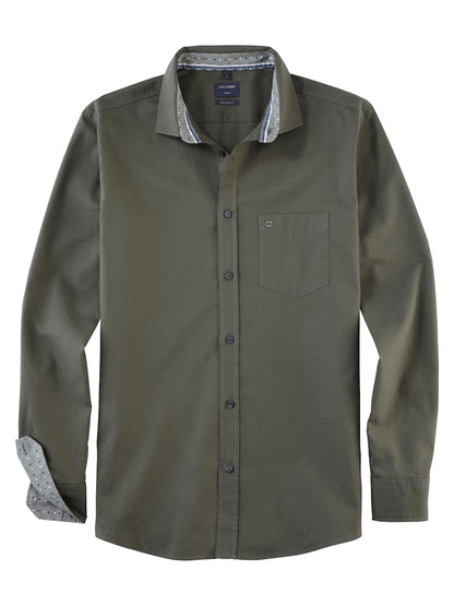 Die neue Linie OLYMP Casual überzeugt mit zeitgemäßer Passform. Die einfarbige Faux-Uni-Struktur aus feinen Baumwollgarnen und der klassische Kent schenken dem anspruchsvollen Freizeit-Look den maskulin-lässigen Touch. Die perfekte Balance zwischen formeller und legerer Performance. Leicht gerundeter Saum. Pflege- und bügelleicht.