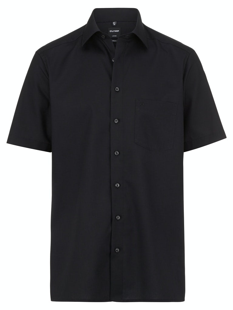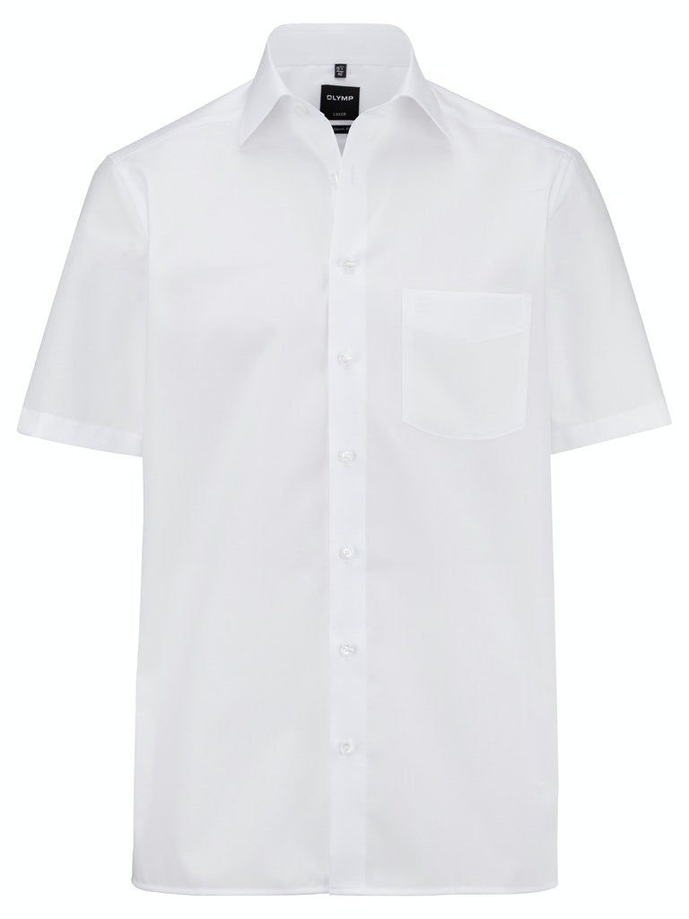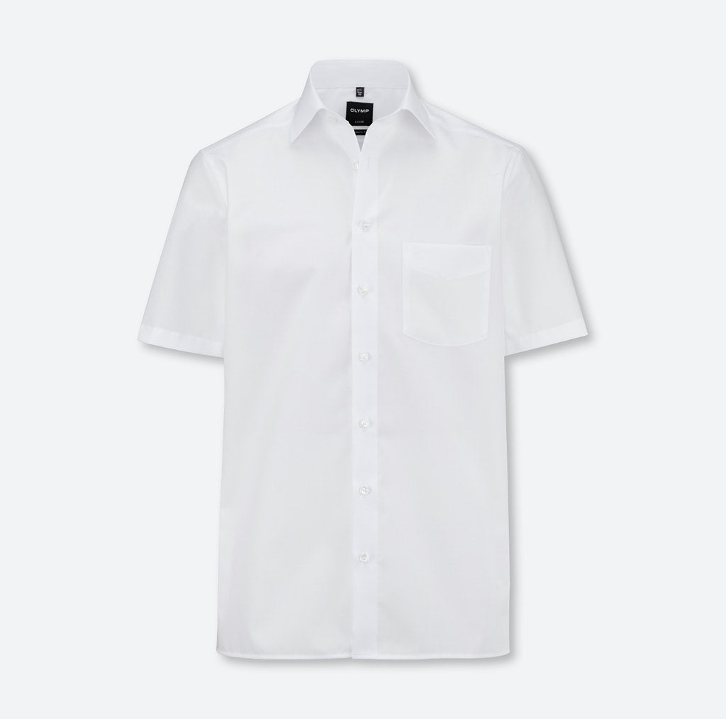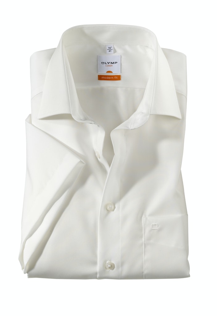 Waschen, trocknen, anziehen – Das Kurzarmhemd der Linie OLYMP Luxor modern fit bleibt auch ohne bügeln den ganzen Tag glatt dank seiner knitterfreien Eigenschaften. Der klassisch beige Oberstoff harmoniert mit dem eleganten New-Kent-Kragen und der italienischen Knopfleiste in perfekter Art und Weise.