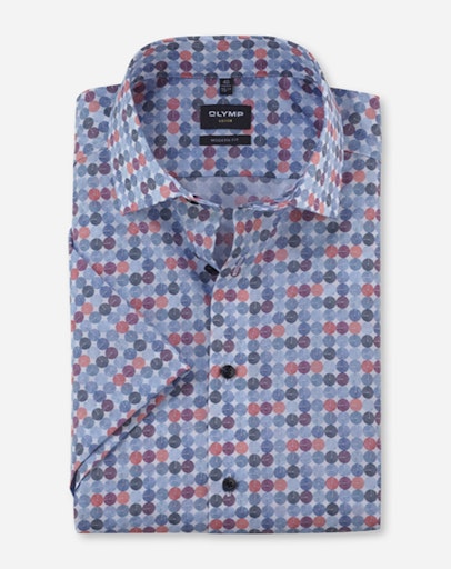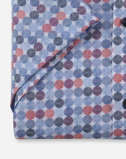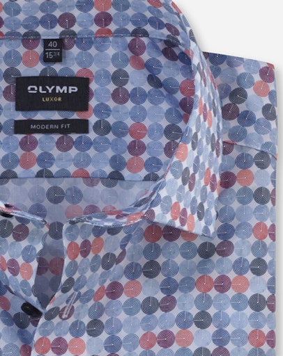 Sommerlicher Eyecatcher gesucht? Der pixelscharfe Grafik-Print mit Akzentuierung auf Koralle und ein weltoffener Global Kent setzen mit diesem OLYMP Luxor die Benchmark bei modischen Business-Outfits. Feiner Baumwoll-Popeline, hautsympathischer Tragekomfort. Bügel- und knitterfrei.