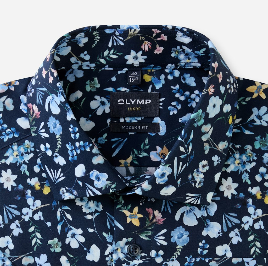 Neue sommerliche Farbkompositionen verleihen Leichtigkeit und Frische im Business. Das OLYMP Luxor Halbarm in körpernahem Modern Fit überzeugt mit floralem Print auf feinen Baumwollgarnen. Der kosmopolitische Global Kent harmoniert perfekt zur sportlichen Linienführung. Hautsympathisch, atmungsaktiv, pflegeleicht und bügelfrei.