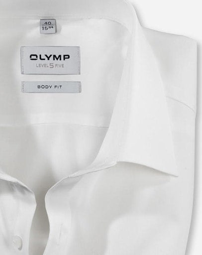Die junge Hemdenlinie OLYMP Level Five überzeugt auf ganzer Linie: körperbetonte Schnittführung, modische Verarbeitung, bügelleichte Eigenschaften. Business-Garderobe auf einem neuen Level in einem schlichten Oberstoff in Weiß. Ein eleganter Global-Kent-Kragen macht den Style komplett.Das hochwertige Gewebe aus Comfort Stretch bietet ein Höchstmaß an Bewegungsfreiheit – trotz Body-fit-Passform.