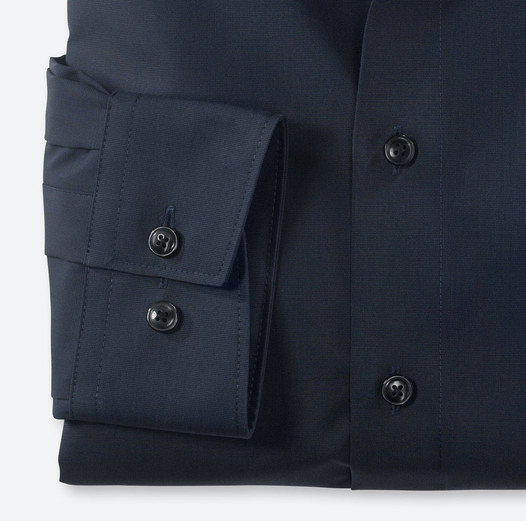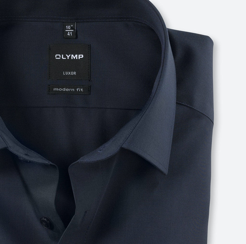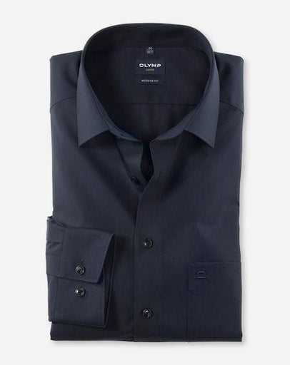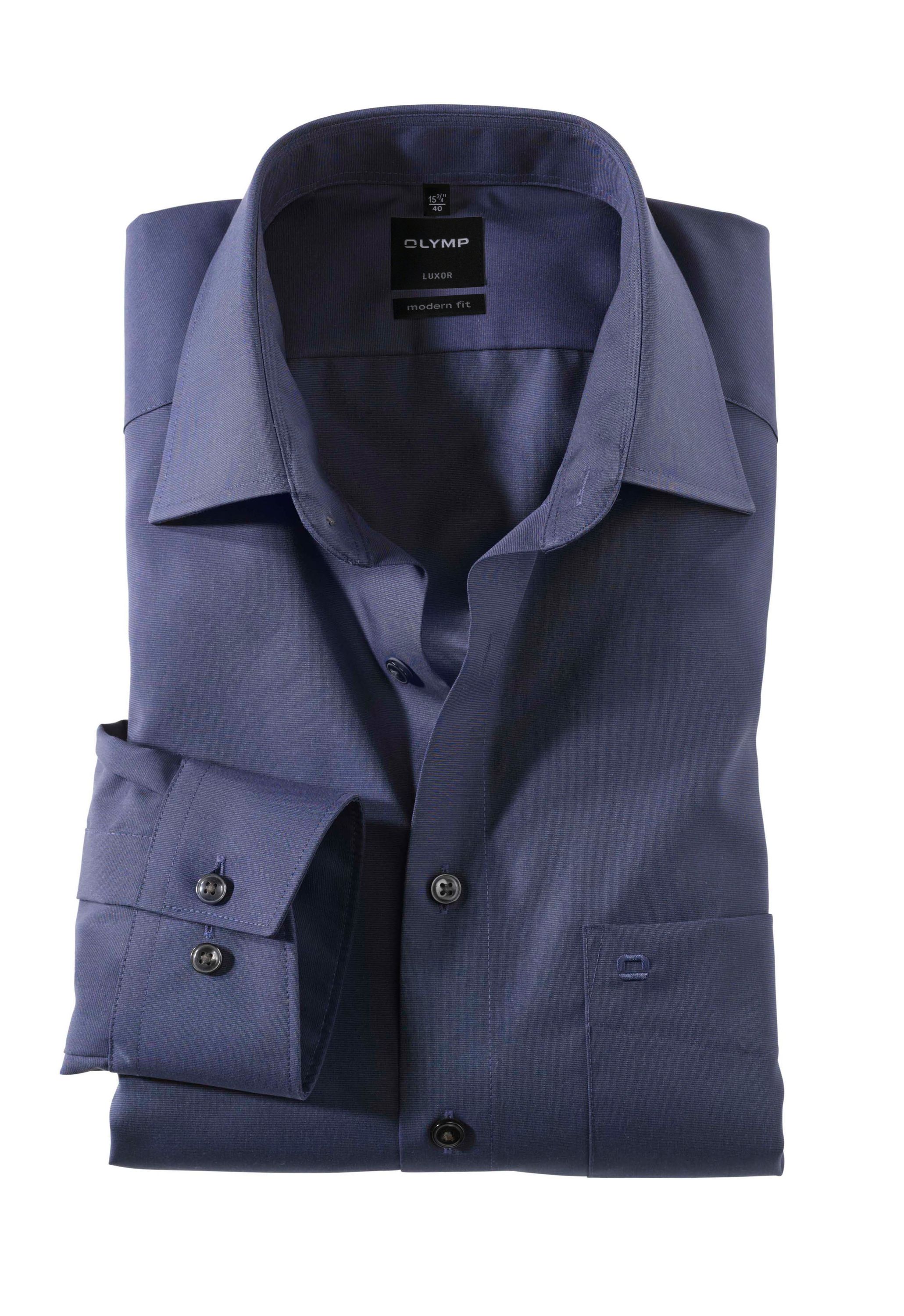 Einfach waschen, trocknen, anziehen – OLYMP Luxor modern fit bleibt auch ohne bügeln den ganzen Tag glatt. Das bügel- und knitterfreie Businesshemd aus 100% Baumwolle macht immer eine gute Figur. Dieses Hemd ist dank des indigofarbenen Fil à Fil Oberstoffs vielseitig tragbar und zeitlos schick. Komplimentiert wird das Modell durch einen eleganten New-Kent-Kragen sowie verstellbaren Kombimanschetten. Der atmungsaktive und hautsympathische Stoff hält jeden Stress aus.