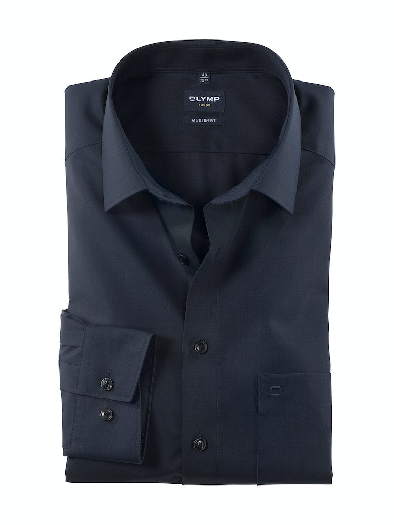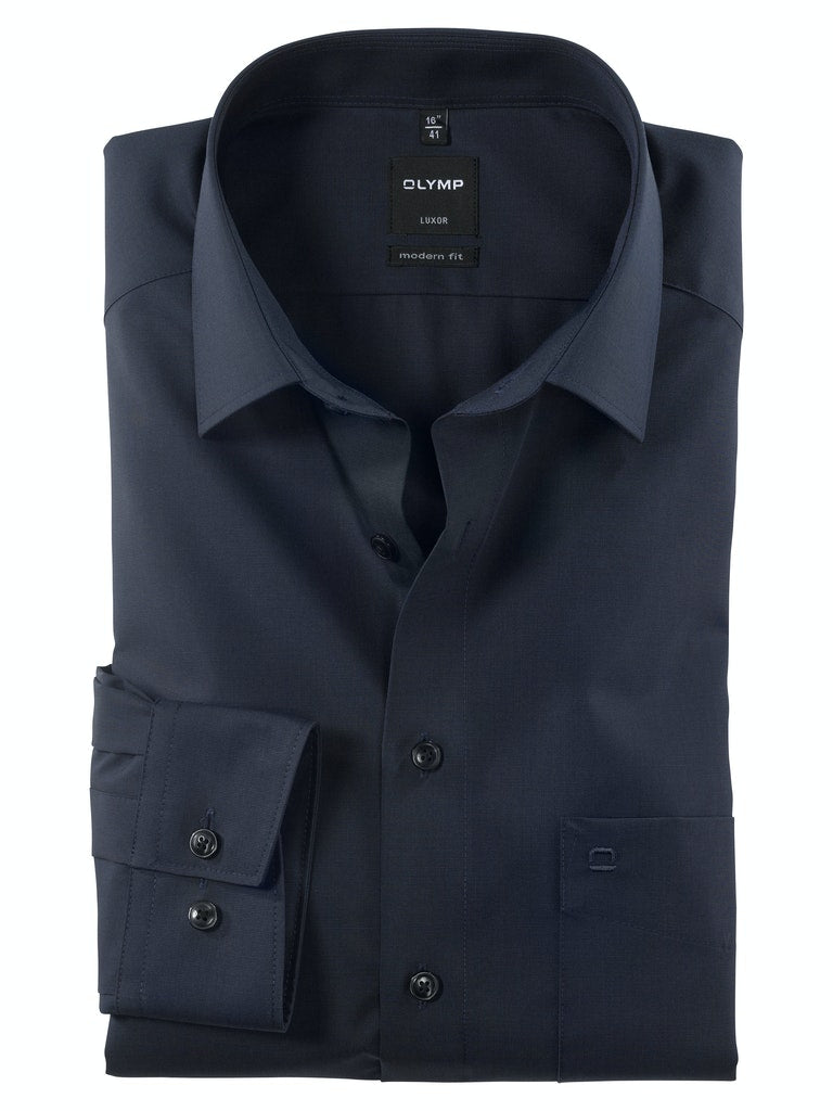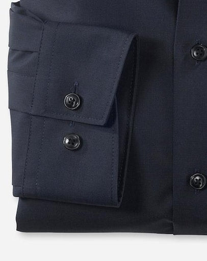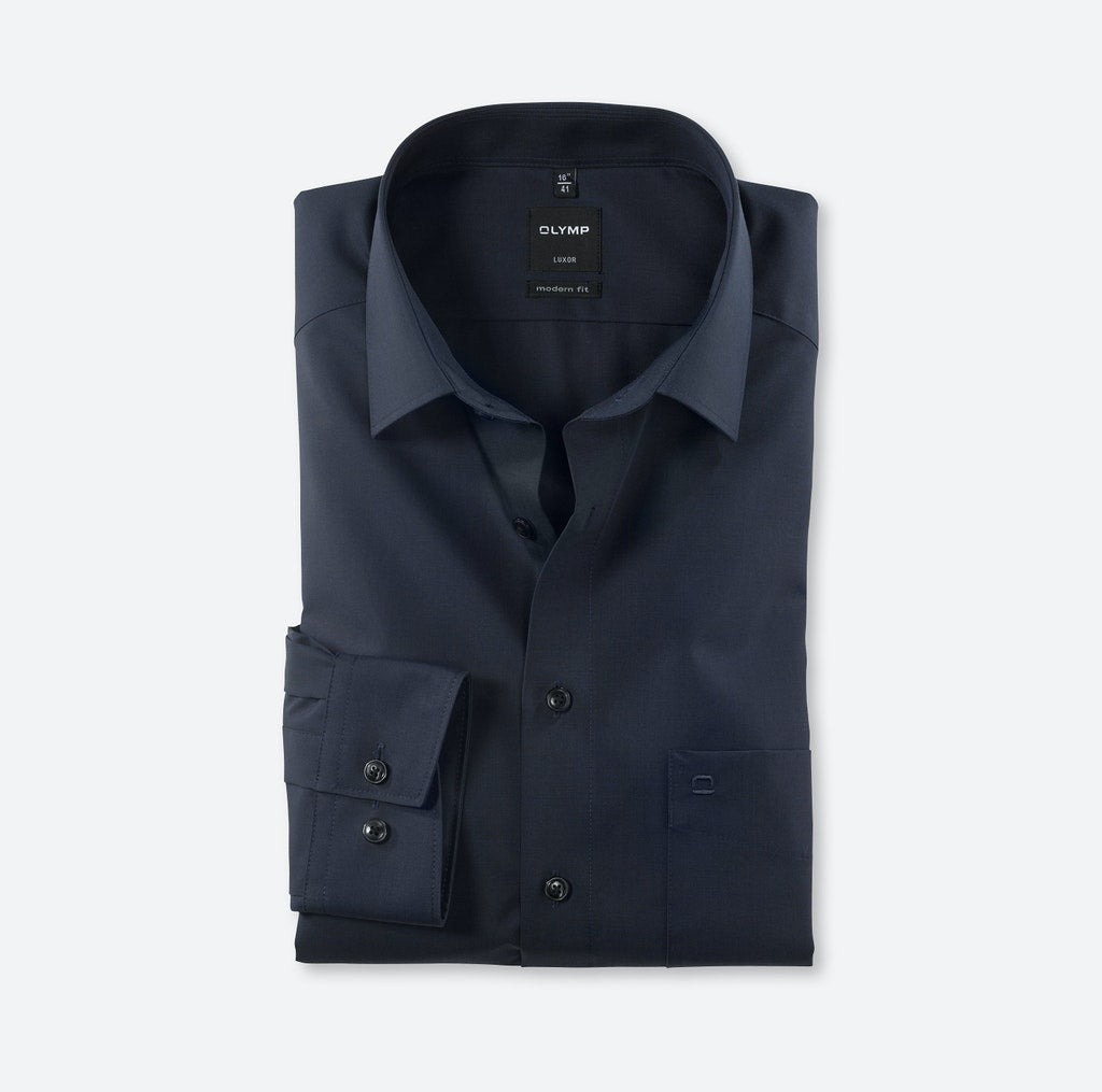 Einfach waschen, trocknen, anziehen – OLYMP Luxor modern fit bleibt auch ohne bügeln den ganzen Tag glatt. Das bügel- und knitterfreie Businesshemd aus 100% Baumwolle macht immer eine gute Figur. Dieses Hemd ist dank des indigofarbenen Fil à Fil Oberstoffs vielseitig tragbar und zeitlos schick. Komplimentiert wird das Modell durch einen eleganten New-Kent-Kragen sowie verstellbaren Kombimanschetten. Der atmungsaktive und hautsympathische Stoff hält jeden Stress aus.