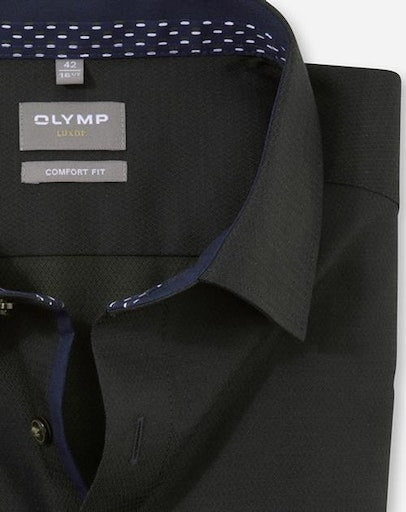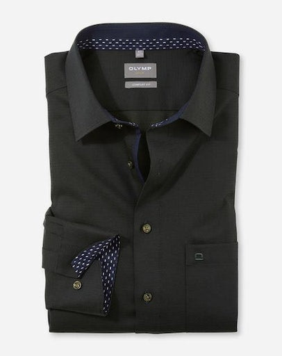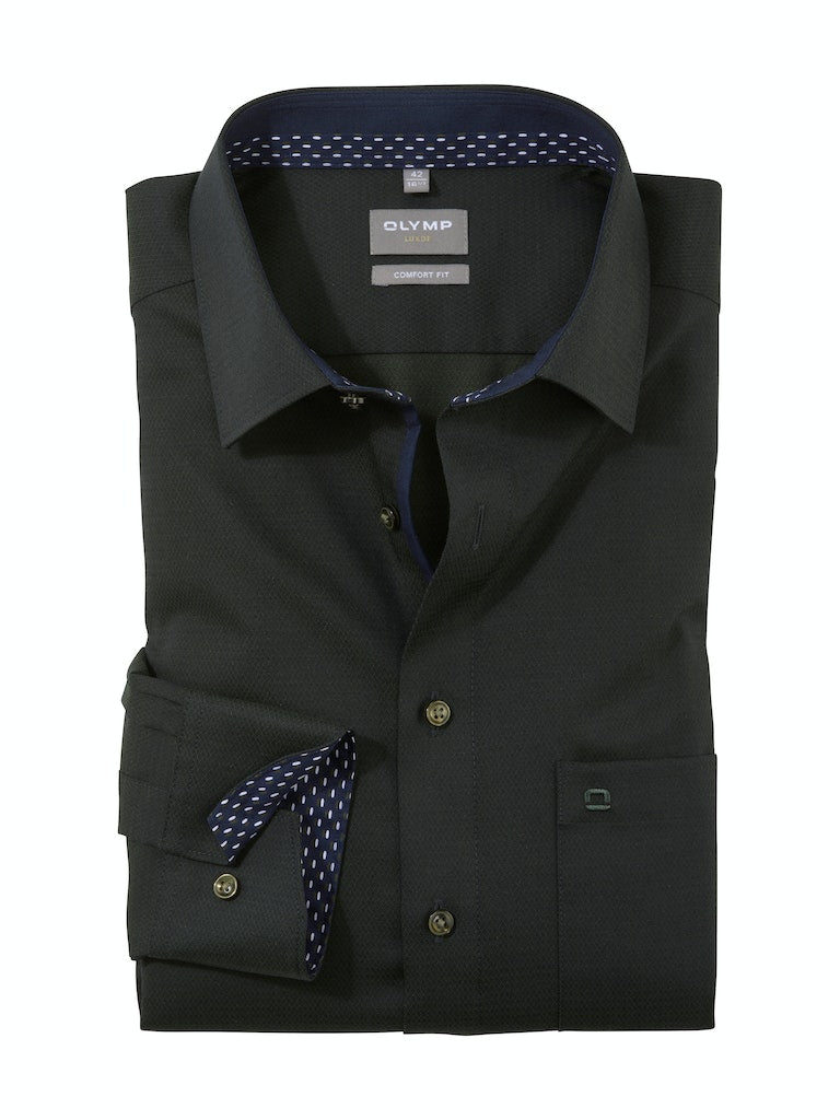 Als edler Allrounder empfiehlt sich dieses OLYMP Luxor in feiner, matt schimmernder Webstruktur und großer Uni-Farbauswahl. Modisches Oliv, geradlinige Silhouette und vielseitiger New Kent stehen für den tadellosen Business-Look. Der kontrastive Innenbesatz setzt den wirkungsvollen modischen Akzent. Atmungsaktiv und hautsympathisch, pflege- und bügelleicht.