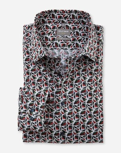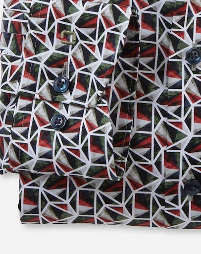 Dieses außergewöhnliche OLYMP Luxor Businesshemd mit pixelscharfem Digitalprint in ungewöhnlicher Farbkomposition auf softem Twill-Gewebe. Die hautsympathische Textur aus Baumwolle garantiert ein angenehmes Tragegefühl und zeitsparende Pflegeleichtigkeit. In maskulin geradliniger Silhouette für den kreativen Business-Look. Vollendet mit vielseitigem New Kent. Ohne Brusttasche.