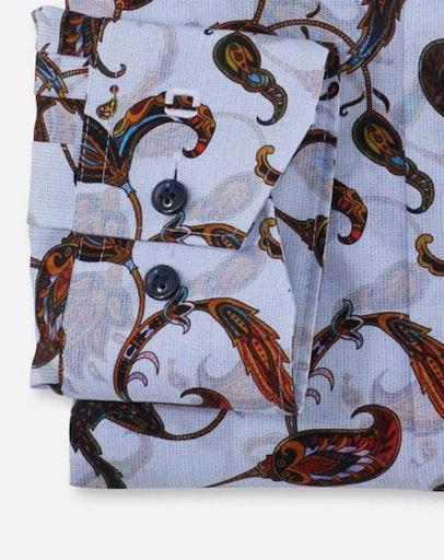 Individueller Look gesucht? Mit diesem kreativen Print-Allover setzen sie zum Sakko die modische Benchmark. Der hervorragende Glättewert des kühl wirkenden Baumwollpopeline zeigt sich im angenehmen Tragekomfort und der zeitsparenden Pflegeleichtigkeit. Sportiver körpernaher Schnitt, weltoffener Global Kent, ohne Brusttasche.