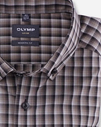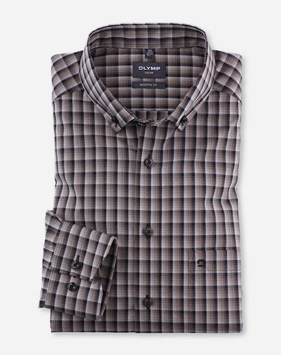 Dieses OLYMP Luxor besticht durch das fein abgestimmte Karo in Taupe auf angenehm glatt gewebtem Baumwolle-Popeline. Die leichte und kühl wirkende Textur ist atmungsaktiv, hautsympathisch sowie bügel- und pflegeleicht. Ein körpernah geschnittenes Businesshemd, das kombinationsstark punktet. Vollendet mit smartem Button-down-Kragen.