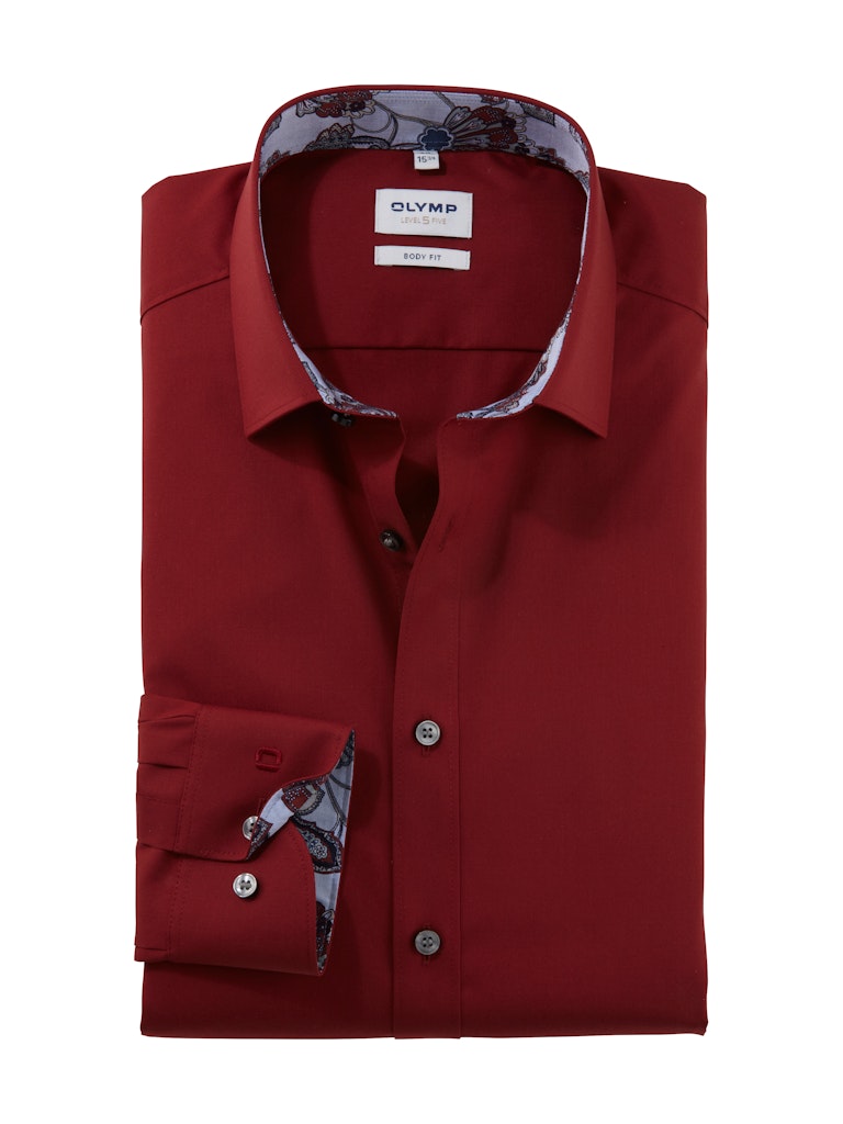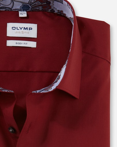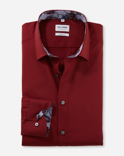 Modisches Businesshemd aus leichtem Chambray. Durch die intensive Färbung, den maskulin taillierten Fit und den New-York-Kent-Kragen wirkt dieses OLYMP Level Five betont modern. Die trageangenehme Qualität enthält 3 % Elastolefin und zeigt eine elegante, matte Textur. Hautsympathisch, pflegeleicht und bügelleicht. Hier in Dunkelrot.