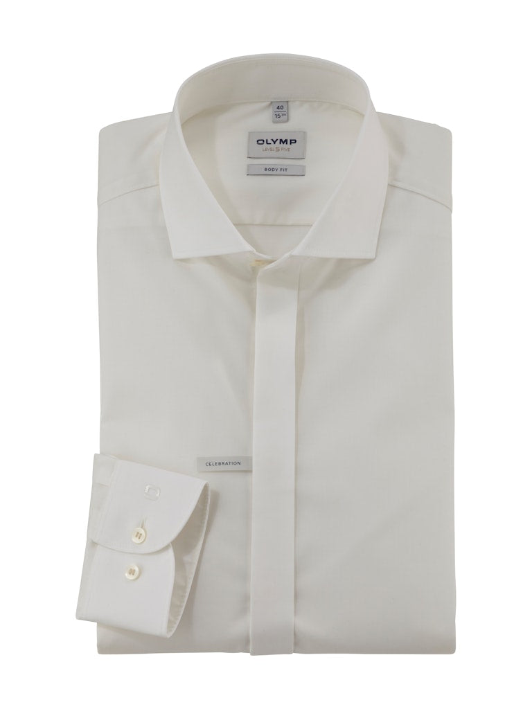 Dress for Yes: Das OLYMP Level Five der Wedding-Kollektion besticht durch die körperbetonende Schnittführung und die besonders feinen, matt schimmernden Garne in Hellbeige. Der bewährte Comfort Stretch sorgt für die formstabile und knitterfreie Performance und den angenehmen Tragekomfort. Vollendet mit majestätischem Royal Kent. Besonders bügelleicht.