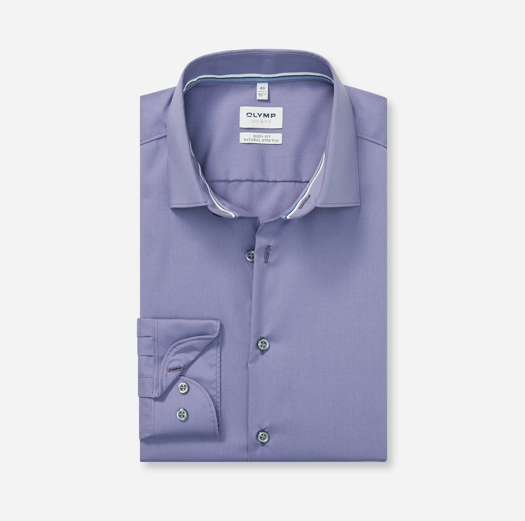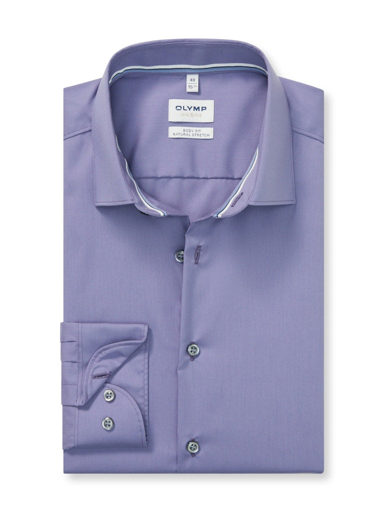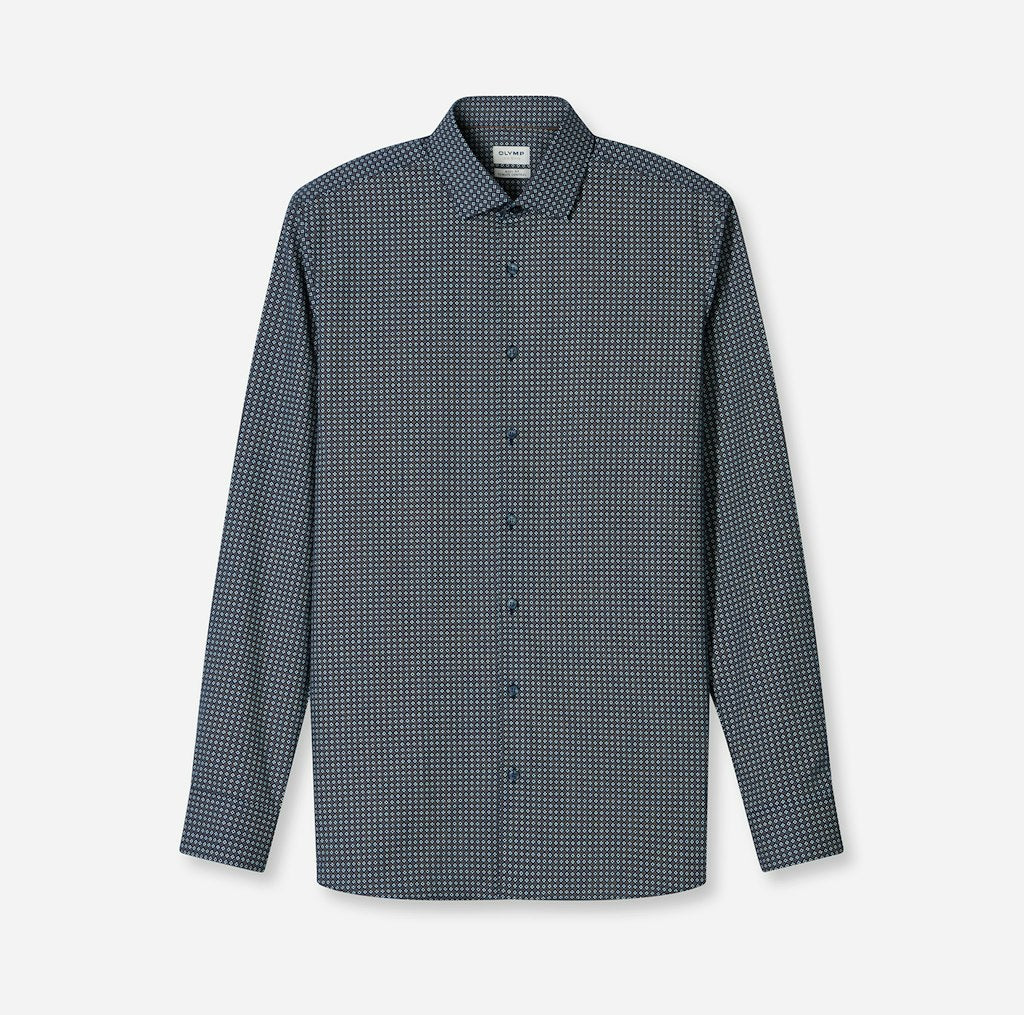 Sympathischer Office-Look mit dezentem Minimal-Dessin auf Marine. Das körperbetonte OLYMP Level Five 24/Seven besticht durch modische, funktionale und trageangenehme Features. Der Climate-Control-Fasermix ist pflegeleicht, atmungsaktiv, dehnbar, schnelltrocknend sowie temperatur- und feuchtigkeitsregulierend. Smarter Modern Kent, lässig gerundeter Saum.