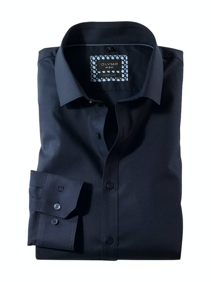 Klassische Eleganz für den superschlanken Mann offeriert das OLYMP No. Six super slim Businesshemd im zeitlosen uni-Design. Die stark taillierte Schnittführung setzt eine durchtrainierte Silhouette perfekt in Szene und macht die energievolle Performance auch optisch sofort klar. Ein dynamischer, zeitgemäßer Style auf der soliden Basis seriöser Business Wear – was will man(n) mehr! Verarbeitet wurde eine hochwertige COMFORT-STRETCH-Qualität mit exzellenten Glättewerten, gefertigt aus Baumwolle auf GREEN CHOICE Niveau. Mit modischem Modern Kent.