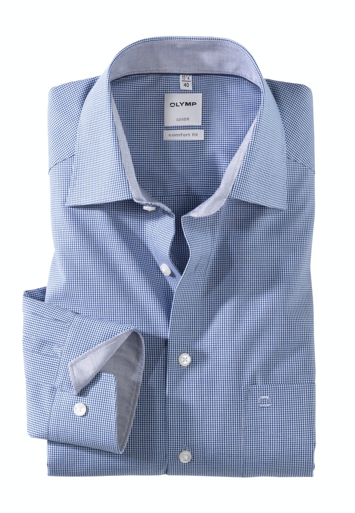 OLYMP Luxor comfort fit beugt Faltenbildung vor. Dieser Effekt gilt zwar vorrangig für den bügel- und knitterfreien Hemdenstoff. Doch die makellose Erscheinung setzt auch den Träger in ein positives Licht. Dieses Hemd mit bleufarbenem Karodesign harmoniert mit dem geschmackvoll darauf abgestimmten Kontrastgewebe an der Innenseite des New-Kent-Kragens sowie den Manschetten in perfekter Art und Weise.
