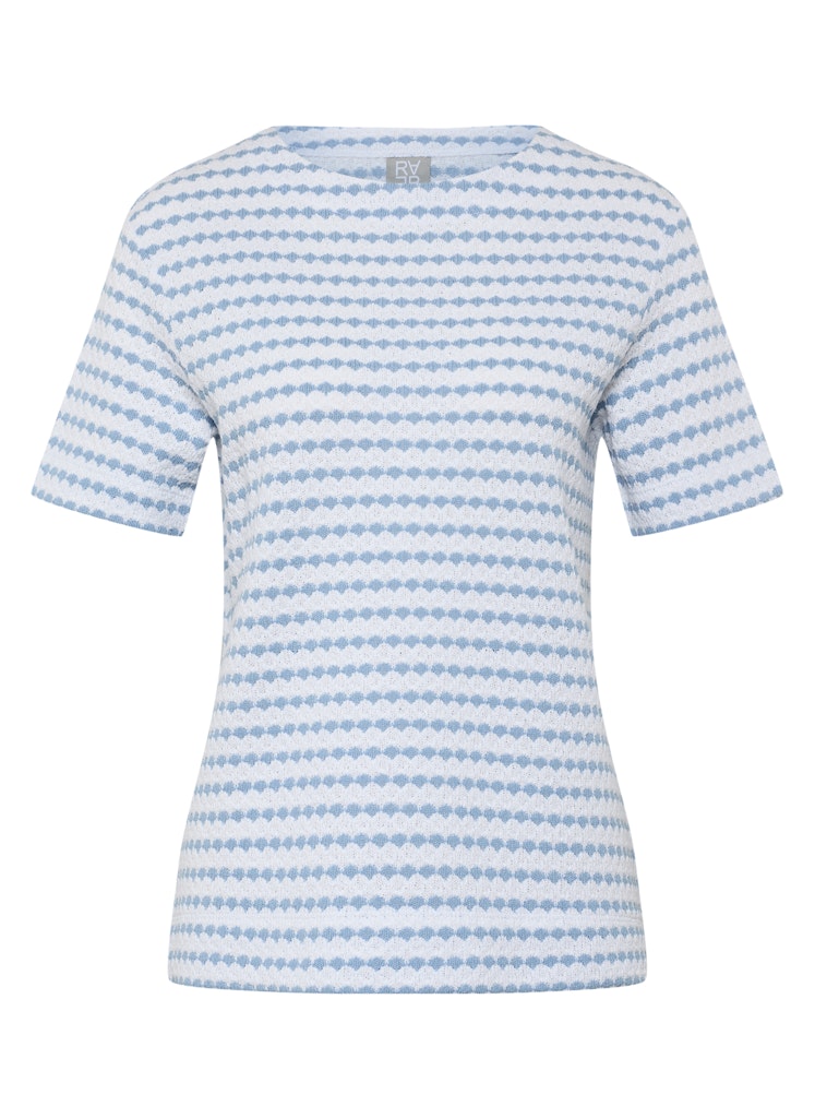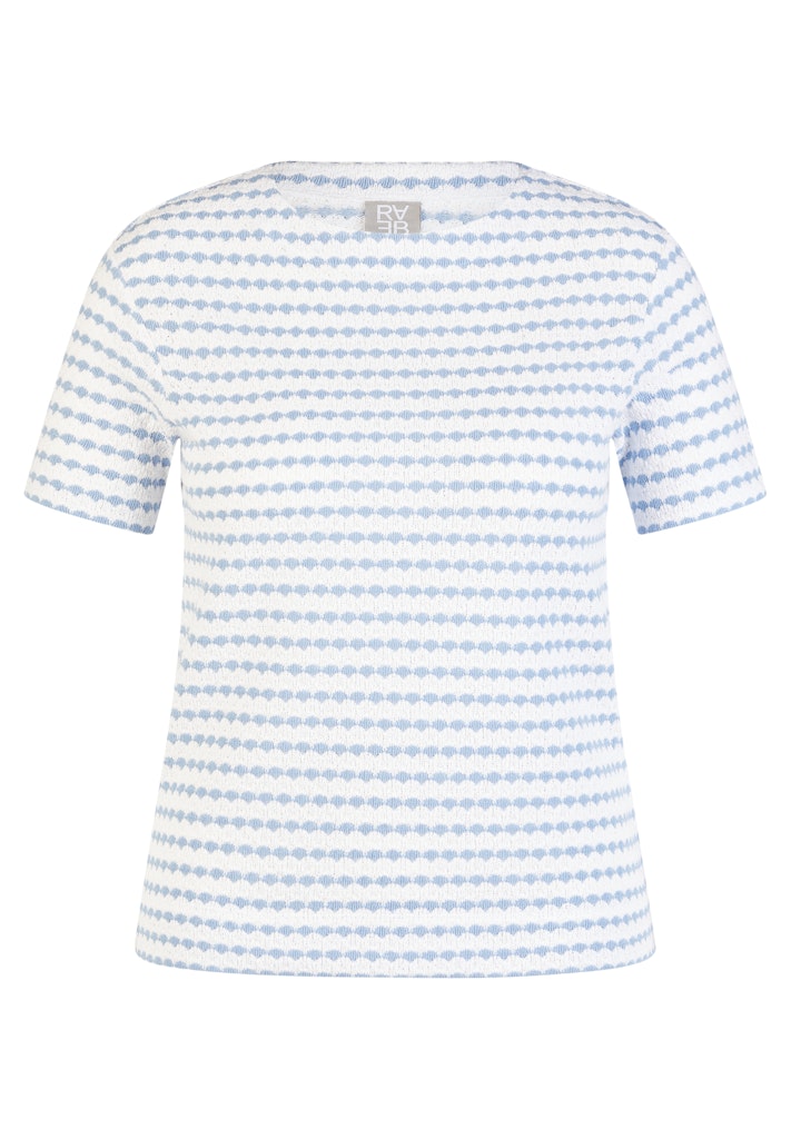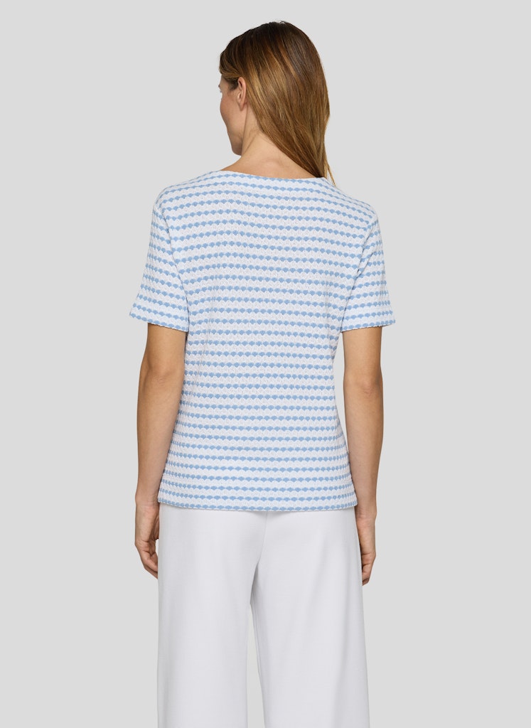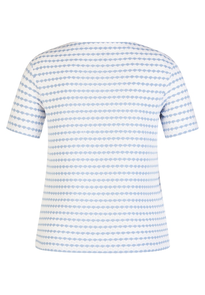 Dieses Shirt überzeugt durch seine besondere Oberflächenstruktur und das grafische Allover-Dessin, das dem Modell eine moderne Ausstrahlung verleiht. Die Materialmischung aus Baumwolle und Polyester sorgt für angenehmen Tragekomfort, Formstabilität und Pflegeleichtigkeit. Der klassische Rundhalsausschnitt und die halblangen Ärmel machen das Shirt zu einem vielseitigen Kombipartner für Alltag und Freizeit. Baumwoll-Polyester-Mischung. Strukturierte Oberfläche. Rundhalsausschnitt. Halbarm. Pflegeleicht und formstabil.