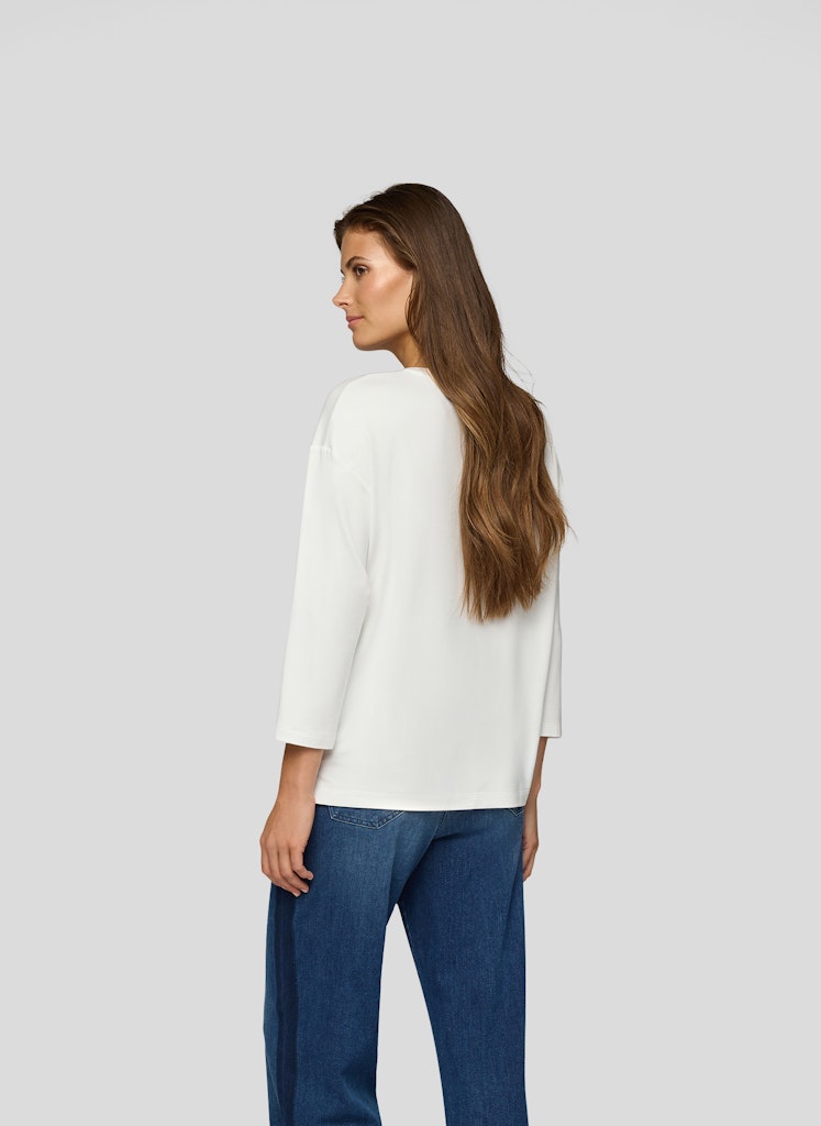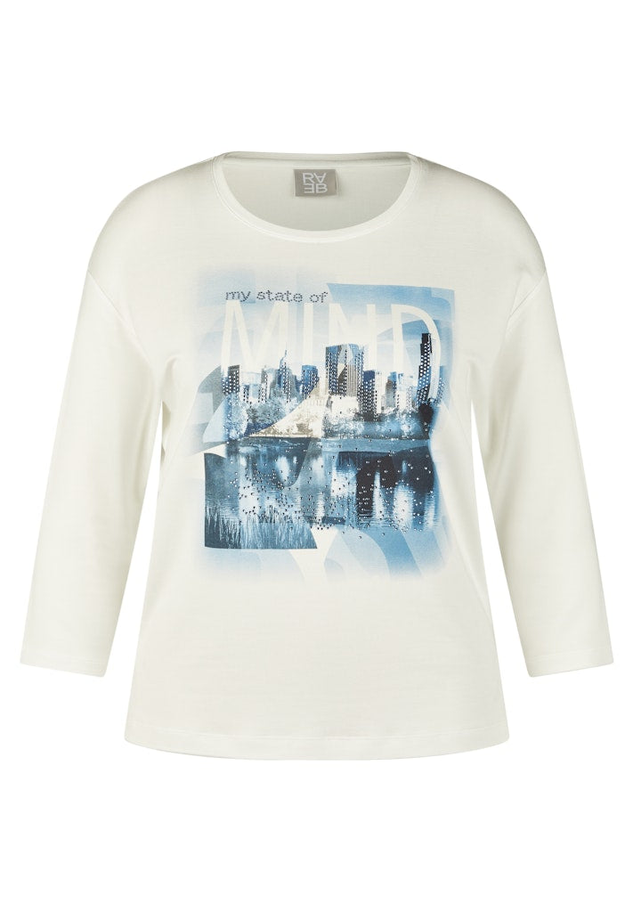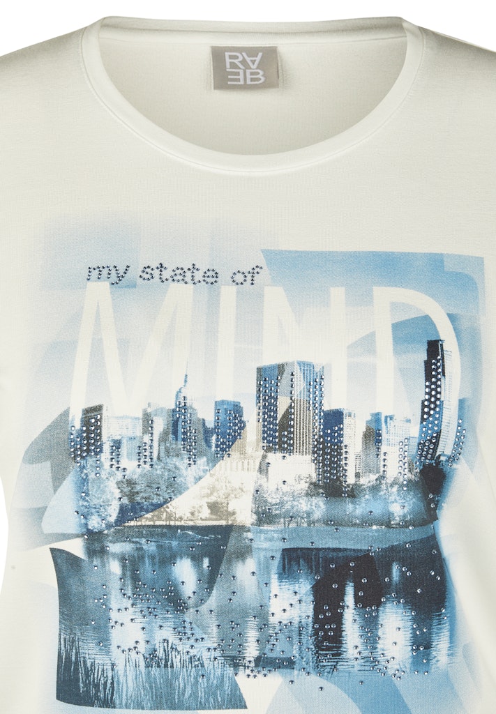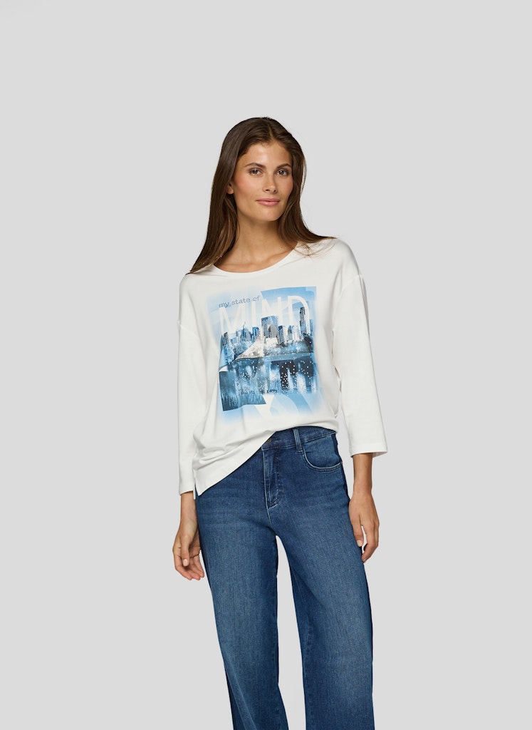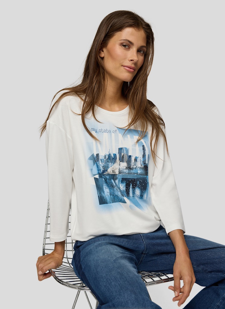 Dieses Shirt begeistert mit einem eindrucksvollen City-Motiv, das einen Hauch von Urbanität versprüht. Der Rundhalsausschnitt sorgt für einen klassischen Look, während die 3/4-Ärmel eine leichte, moderne Note verleihen. Dank des weichen Materials trägt sich das Shirt angenehm auf der Haut.Weiche Jersey-Qualität.Gerader Schnitt für bequemen Sitz.Ideal für lässige Freizeit-Outfits