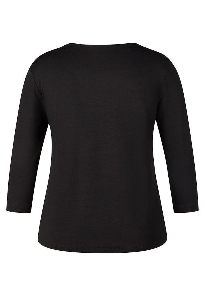 Dieses Shirt kombiniert einen künstlerischen Allover-Print auf der Vorderseite mit unifarbenen Ärmeln _ ein echtes Statement-Piece für moderne Looks. Der elastische Saum sorgt für eine lockere, bequeme Passform.Rundhalsausschnitt.3/4-Ärmel in Kontrastfarbe.Vorderseite mit farbintensivem Muster.Elastischer Saum.Angenehme Jersey-Qualität.