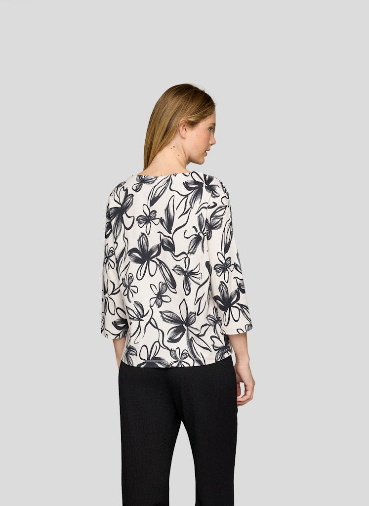 Dieses modische Shirt zieht alle Blicke auf sich mit seinem schwungvollen floralen Allover-Print. Der weiche Jersey trägt sich angenehm und bietet optimale Bewegungsfreiheit. Der klassische Rundhalsausschnitt und die gerade Form schmeicheln der Figur und machen das Shirt zu einem vielseitigen Kombipartner für gepflegte Casual-Looks oder elegante Outfits.Rundhalsausschnitt.Floraler Allover-Print.Weiche Jersey-Qualität.Gerade Form.Hoher Tragekomfort.