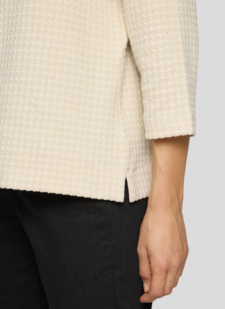 Dieses Shirt mit dezentem Hahnentritt-Muster überzeugt durch klare Linien und eine feminine Silhouette. Der elegante U-Boot-Ausschnitt und die halblangen Ärmel unterstreichen den zeitlosen Look. Dank pflegeleichtem Materialmix mit Baumwolle bietet das Shirt ein angenehmes Tragegefühl und ist vielseitig kombinierbar _ ob zu Jeans oder Stoffhose. Pflegeleichtes Mischgewebe. Hahnentritt-Muster. Leichter U-Boot-Ausschnitt. Halblange Ärmel.