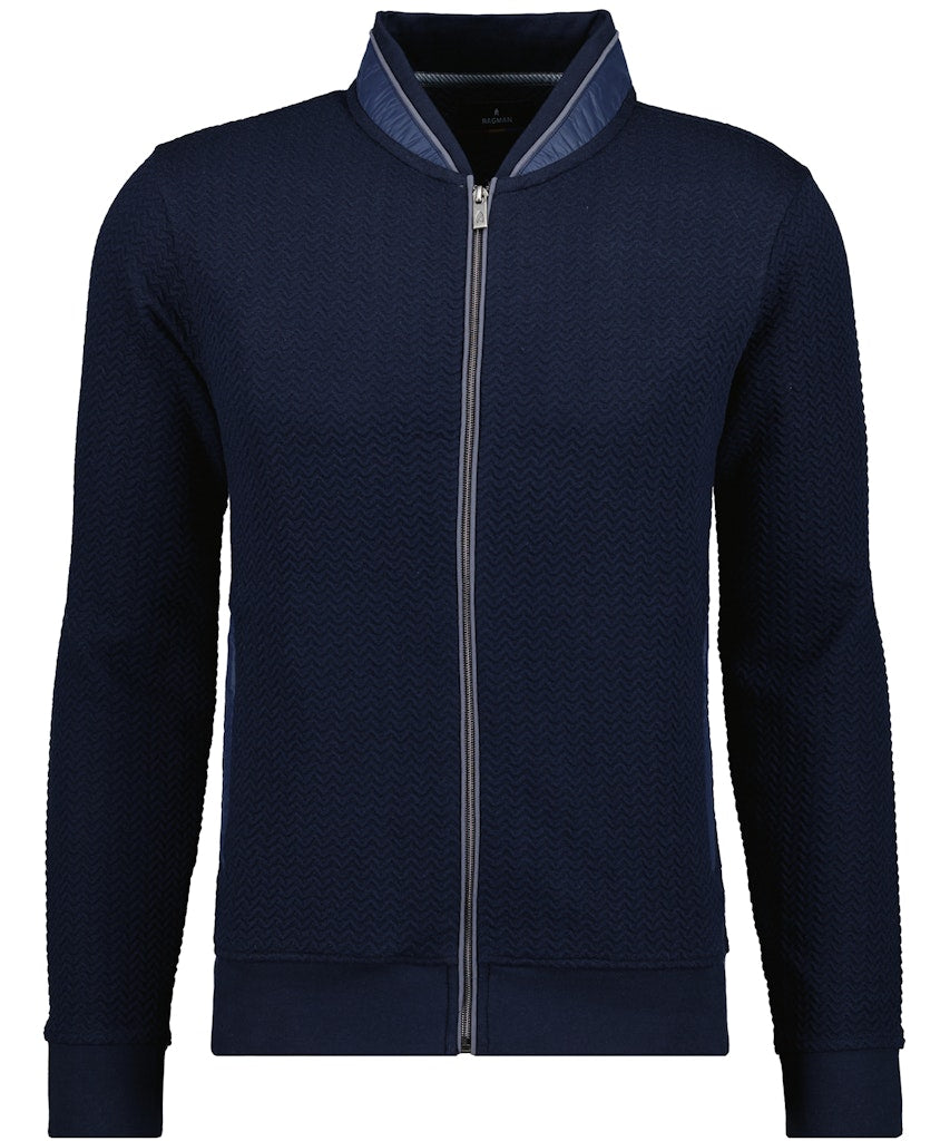 Die RAGMAN Sweatjacke, die jedes Outfit modisch ergänzt - ob Casual- Sonntags- oder sogar Business-Look. Mit coolem Baseball-Kragen und Nylon-Besatz, Reissverschluss mit seitlicher Ziernaht und zwei superpraktischen Seitentaschen mit Reissverschluss, die passend zum trenidgen Kragen abgestimmt wurden. Das Jacquard-Dessin ist ein weiteres Highlight bei diesem RAGMAN-Cardigan, der sich wunderbar und absolut modisch stylen lässt - offen mit Hemd darunter und einer coolen Chino oder sportiv mit T-Shirt, Trainingshose oder Jeans.