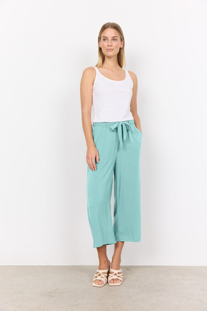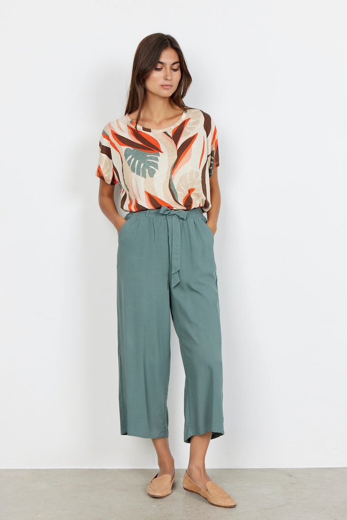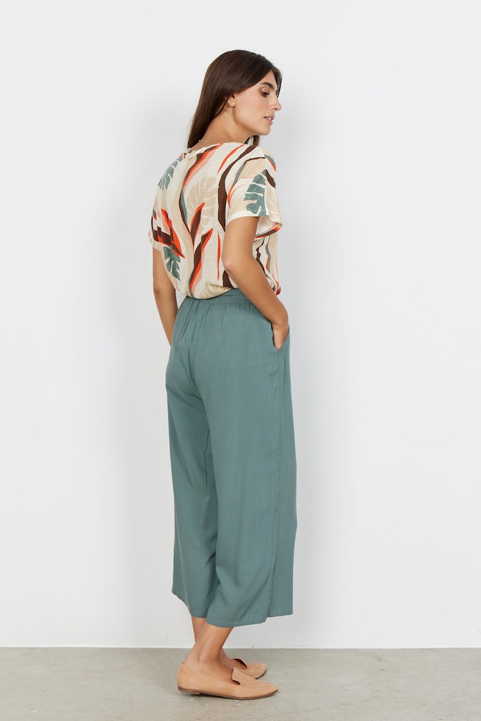 SC-Radia 52-B ist eine hübsche 3/4 Hose mit einer legeren Passform in einer tollen 100% Viskose-Qualität. Die Hose hat einen Bindegürtel und einen elastischen Bund, was sie super bequem macht. Kombiniere sie für einen sommerlichen Alltagslookmit einem Basic-T-Shirt.