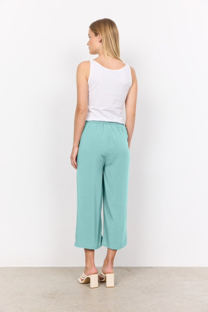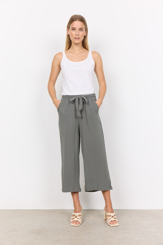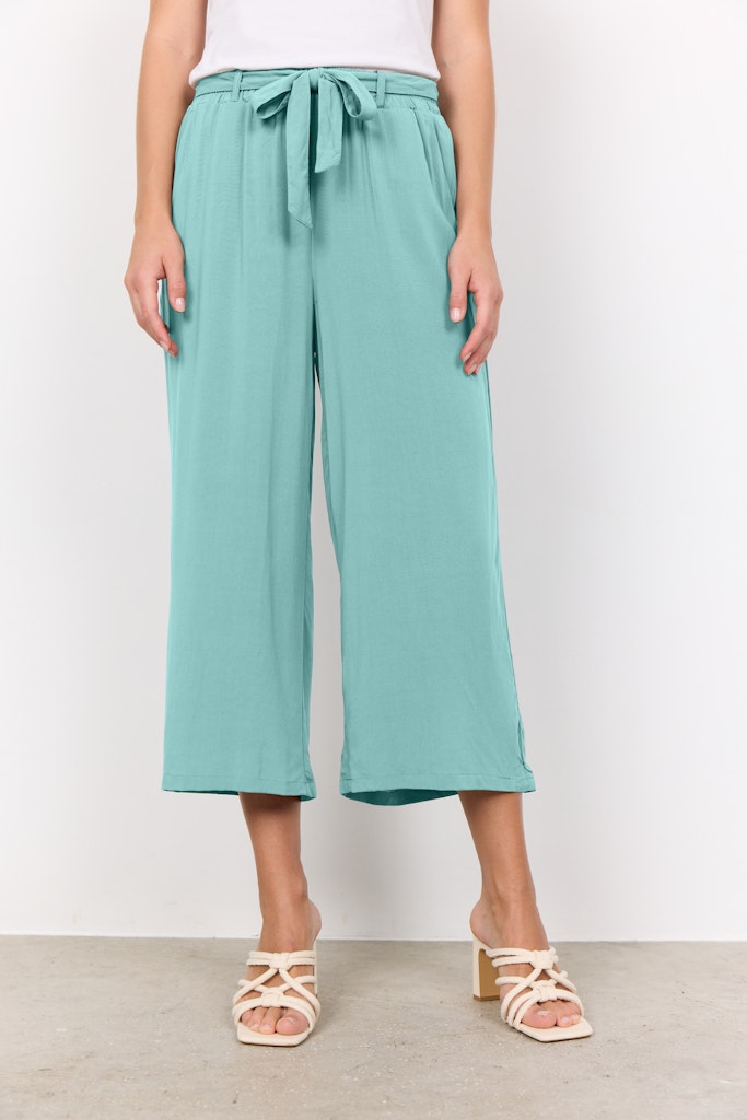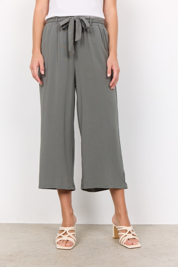 SC-Radia 52-B ist eine hübsche 3/4 Hose mit einer legeren Passform in einer tollen 100% Viskose-Qualität. Die Hose hat einen Bindegürtel und einen elastischen Bund, was sie super bequem macht. Kombiniere sie für einen sommerlichen Alltagslookmit einem Basic-T-Shirt. -