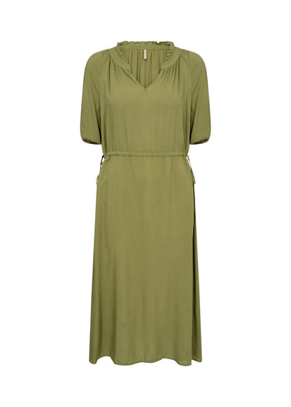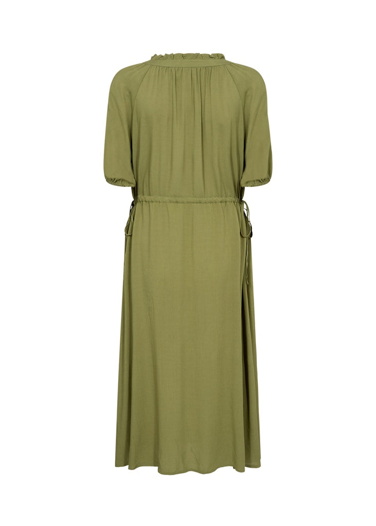 SC-RADIA 212 ist ein stilvolles Kleid aus 100% ECOVERO Viskose. Das Kleid hat einen plissierten Kragen, ein verstellbares Taillenband und ist auf eine Midi-Länge mit einem entspannten Ärmeldesign geschnitten. Das Kleid kann mit flachen oder hohen Schuhen für einen lässigen Look kombiniert werden, der für verschiedene Anlässe geeignet ist.