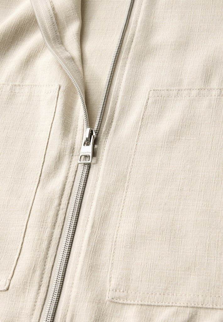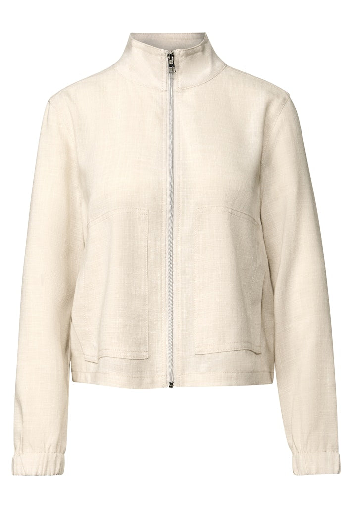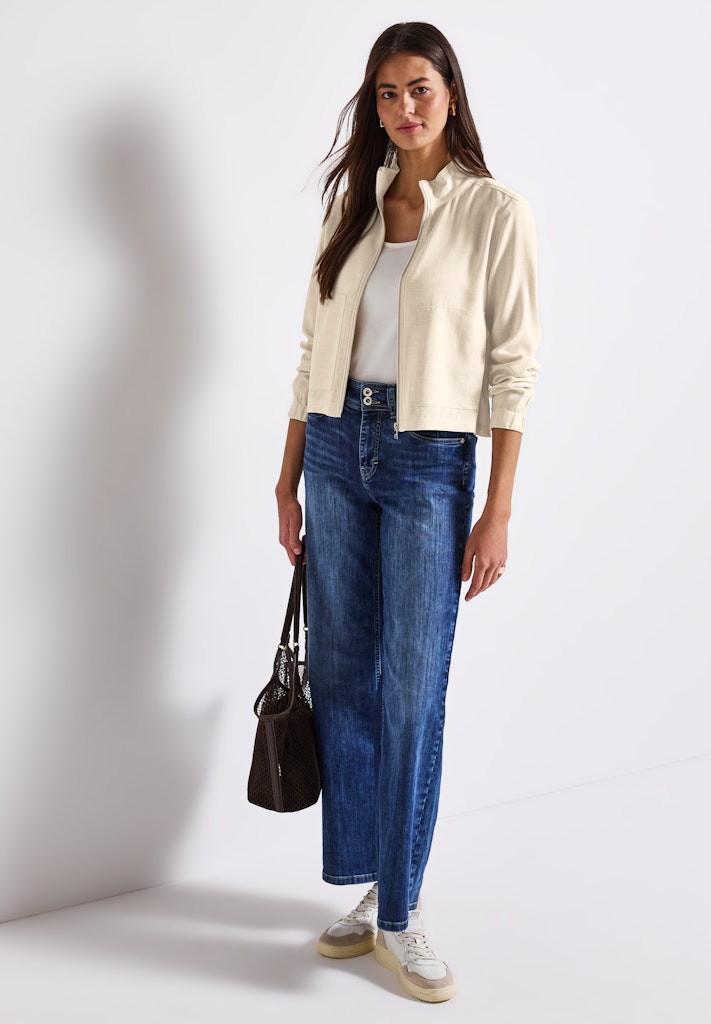 Die Jacke im Melange-Look von Street One für Damen bringt mit ihrem sportiven Design frischen Wind in deinen Kleiderschrank. Der Stehkragen, seitliche Taschen und die langen Ärmel sorgen für einen lässigen Look, während der elastische Materialmix mit Stretchanteil für hohen Tragekomfort steht. Leichte Jacke Stehkrangen Seitliche Taschen Langarm Materialmix mit Stretchanteil Material: Obermaterial: 49% Polyester, 44% Viskose, 4% Elasthan, 3% Polyamid; Futter: 100% Polyester