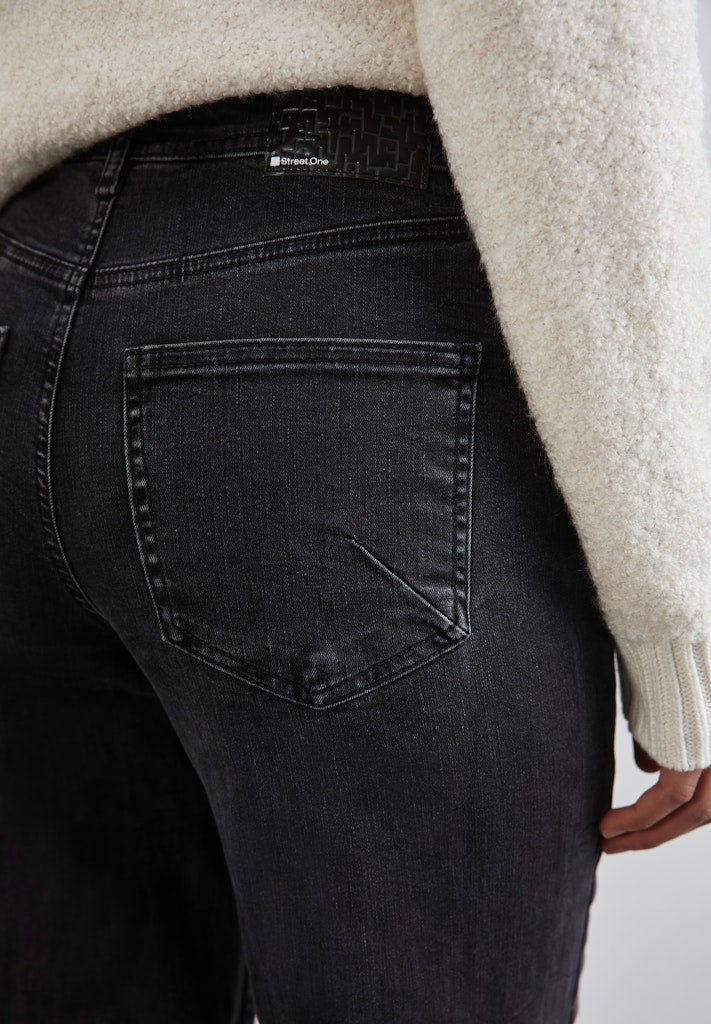 Die Jeans im Loose Fit von Street One für Damen bietet mit High Waist und Wide Legs eine moderne Silhouette. Die schwarze Waschung und der Baumwollmix mit Stretchanteil sorgen für hohen Tragekomfort und eine vielseitige Kombinierbarkeit. Mit der 5-Pocket Ausstattung ist diese Jeans ein lässiges Basic. Jeanshose im Loose Fit High Waist mit Wide Legs 5-Pocket Schwarze Waschung Baumwollmix mit Stretchanteil Material: 88% Baumwolle, 10% Polyester, 2% Elasthan