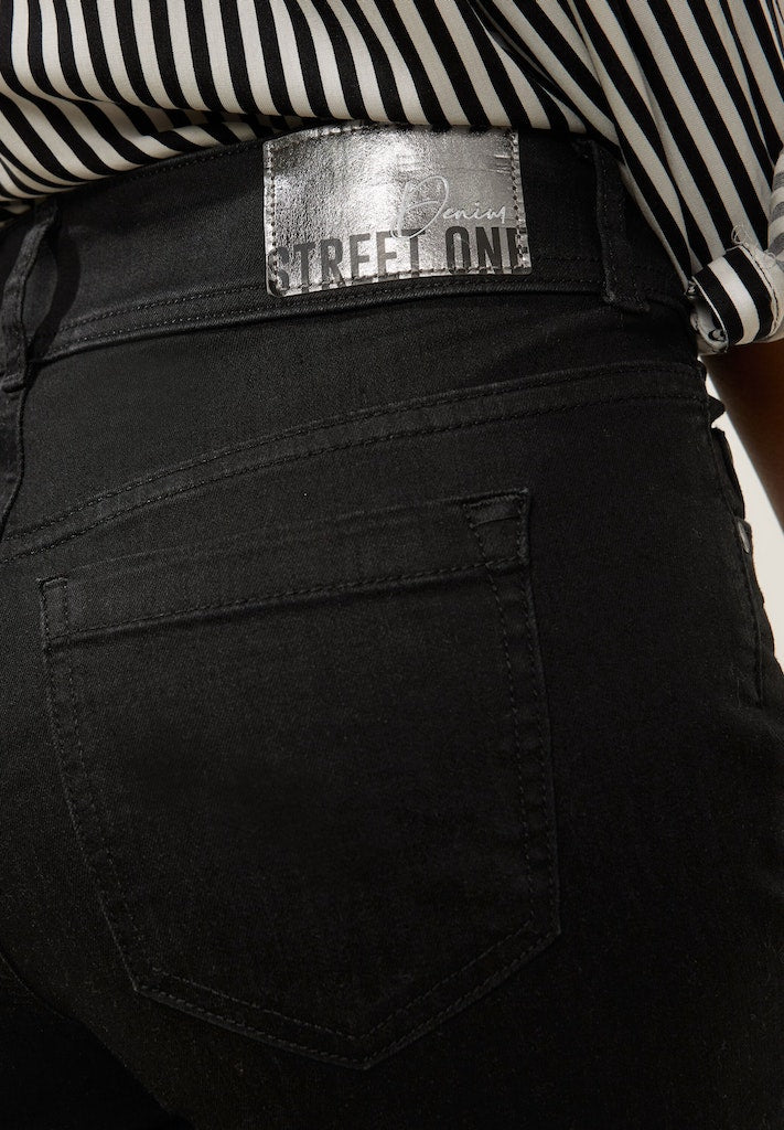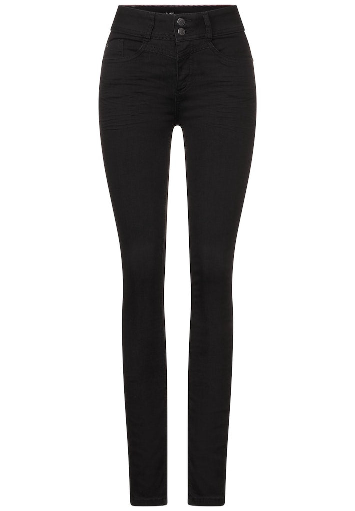 Silhouette perfekt betont! Die Street One Damenjeans im Style York im Slim Fit mit Slim Legs ist eine Denim, die mit ihrem hohen Bund schmeichelt. Die vielseitige dunkle Waschung lässt sich wunderbar mit verschiedenen Farben und Mustern kombinieren. Im 5-Pocket Style setzt sie auf einen klasssichen Fit. Slim Fit Jeans Slim Legs High Waist Dunkle rinsed Waschung 5-Pocket Style Material: 82% Baumwolle, 15% Polyester, 3% Elasthan