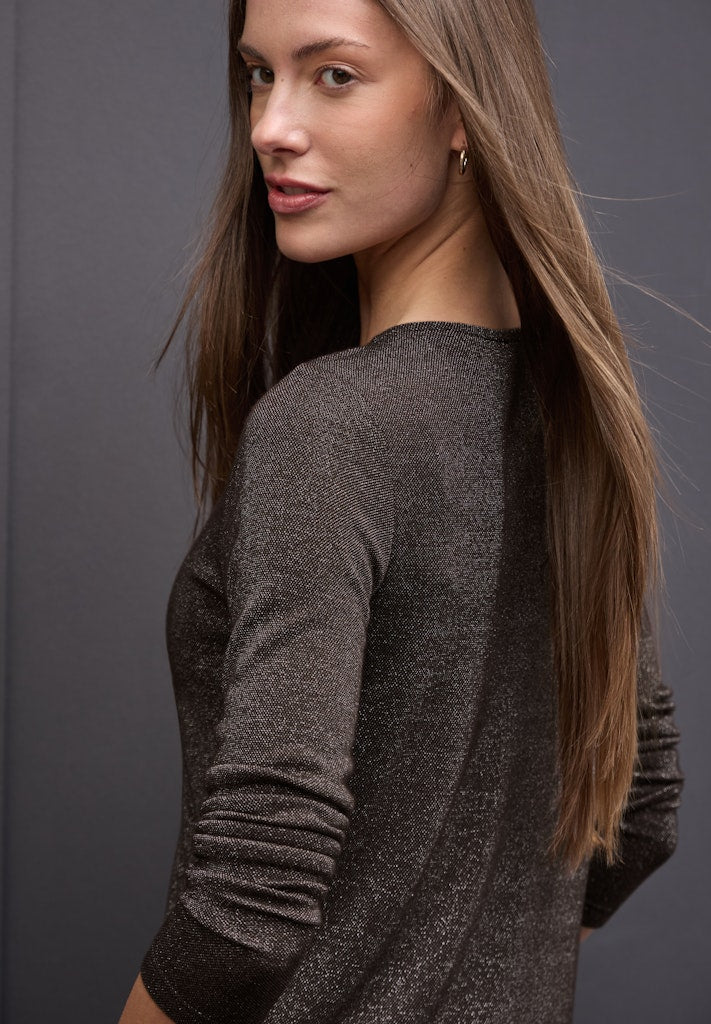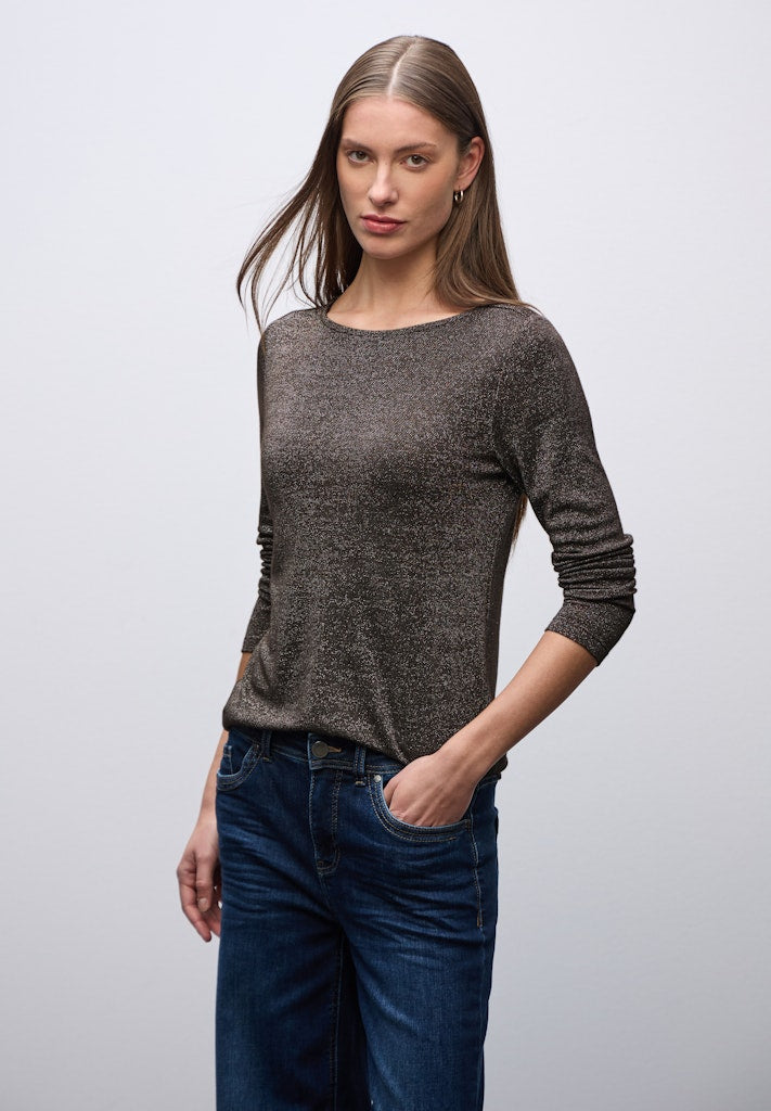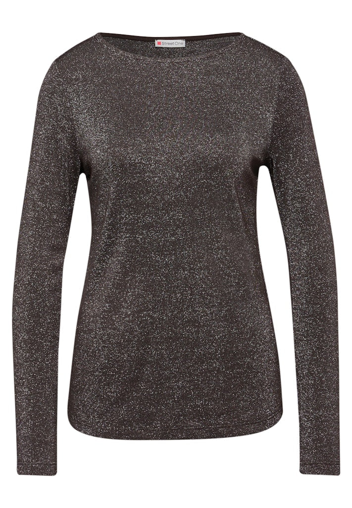 Das Langarmshirt von Street One für Damen begeistert mit glitzerndem Look und femininem U-Boot-Ausschnitt. Die weiche Qualität macht es zum idealen Stylingpartner für festliche Outfits oder einen Hauch Glamour im Alltag. Damenshirt Glitzer-Look U-Boot-Ausschnitt Langarm Highlight-Piece zum Kombinieren Material: 82% Viskose, 10% Metallfasern, 8% Polyamid